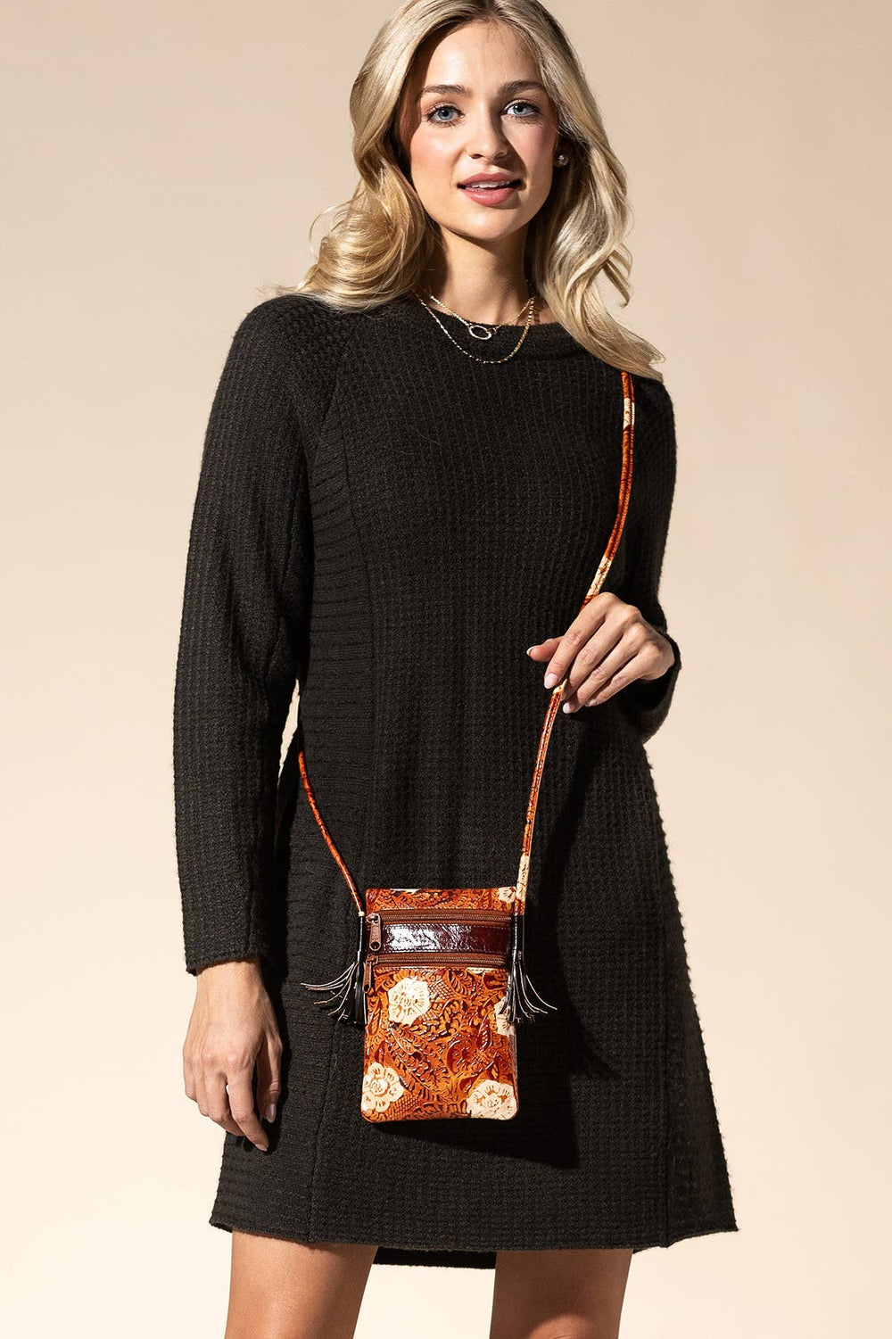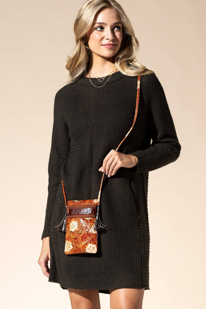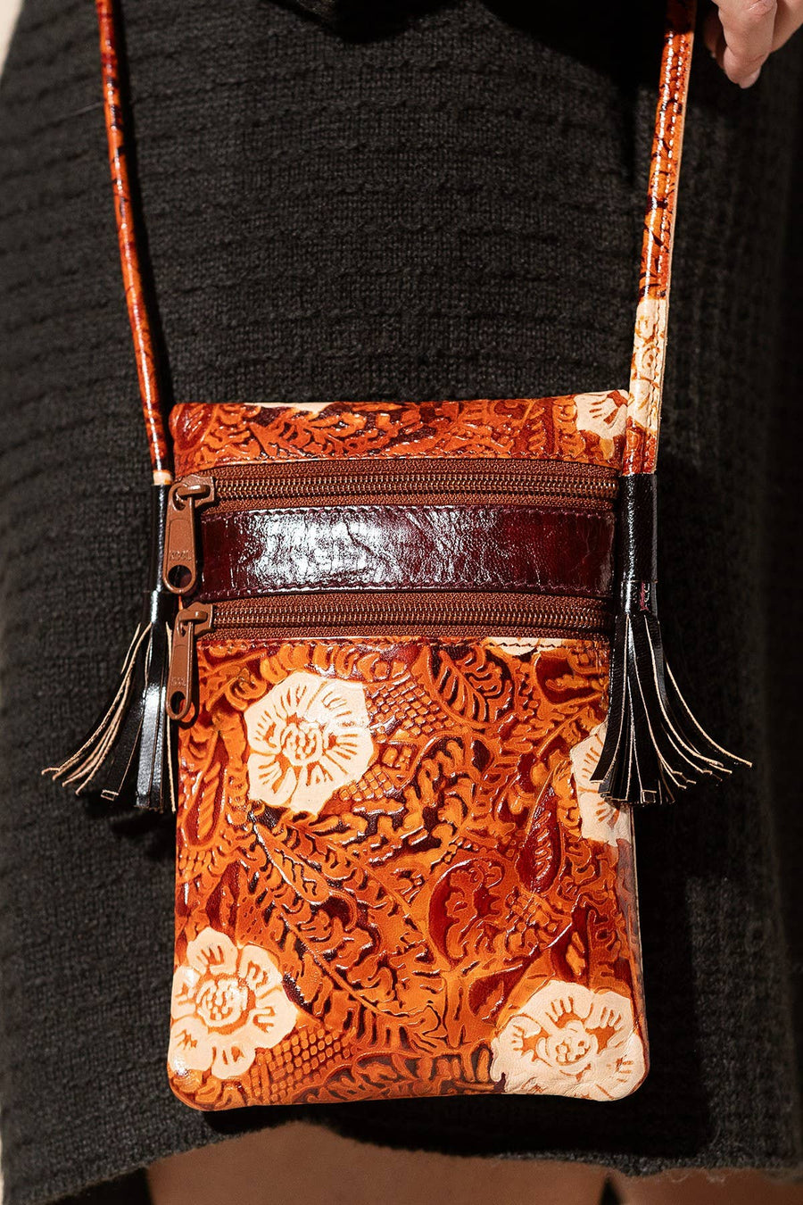 Introducing the Magnolia Crossbody Bag, a stylish and practical way to carry your essentials. Hand-painted with a beautiful floral pattern and featuring elegant tassel accents, this genuine leather bag is perfect for any fashion-forward individual. Crafted in India with artisanal expertise, it's a unique addition to your accessory collection.