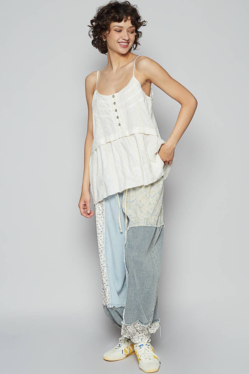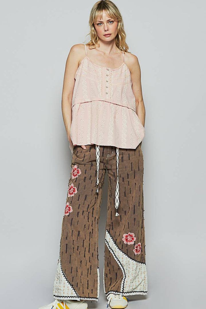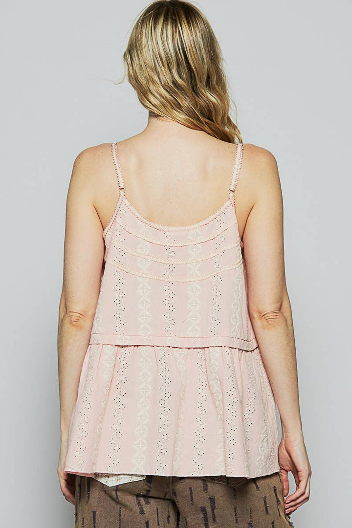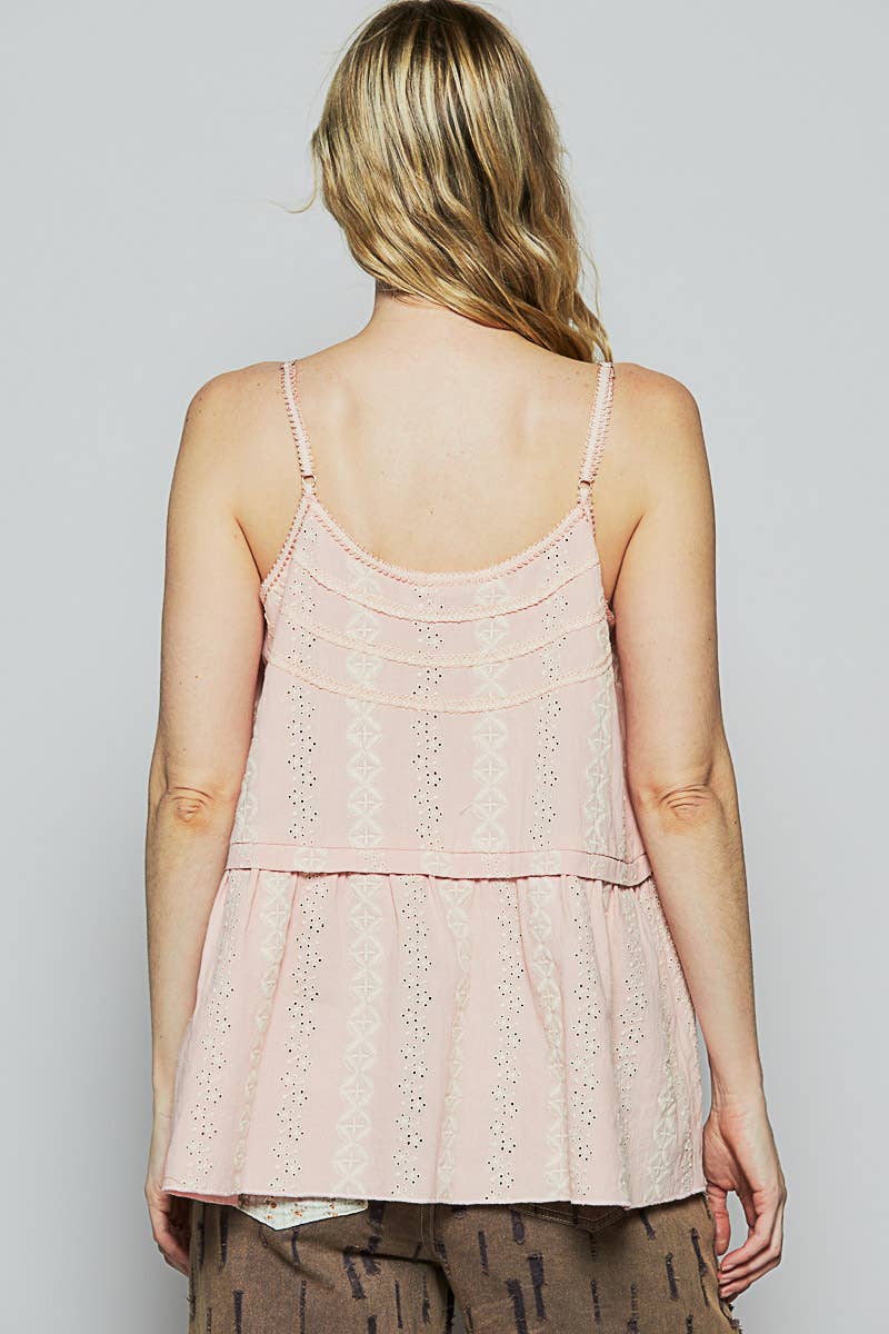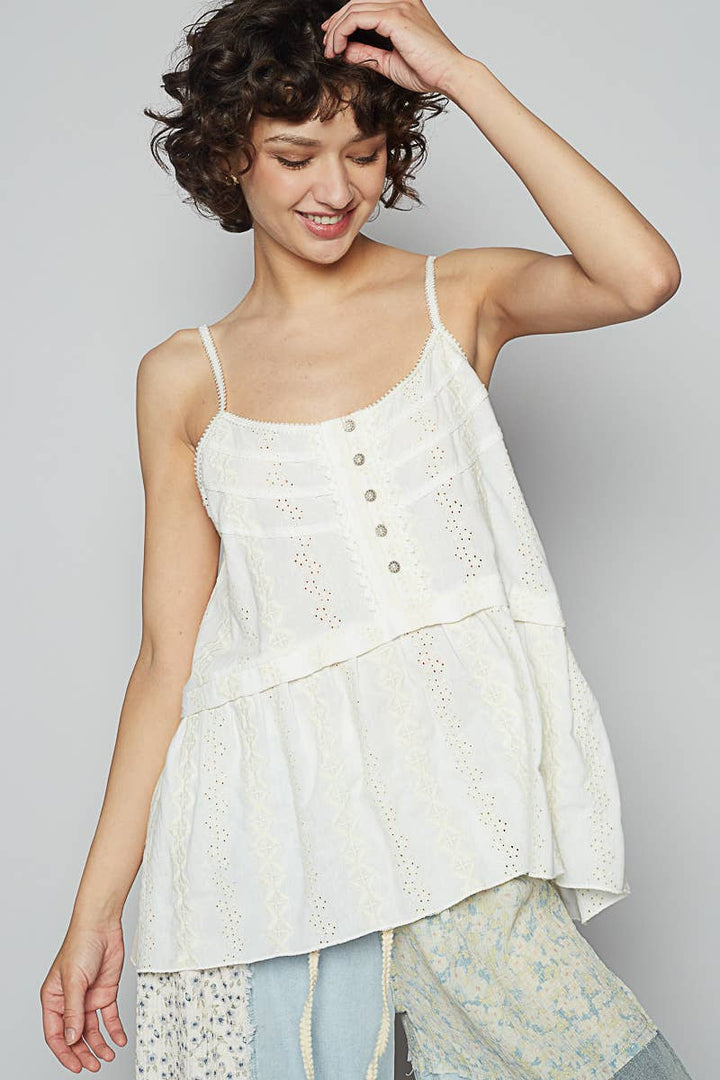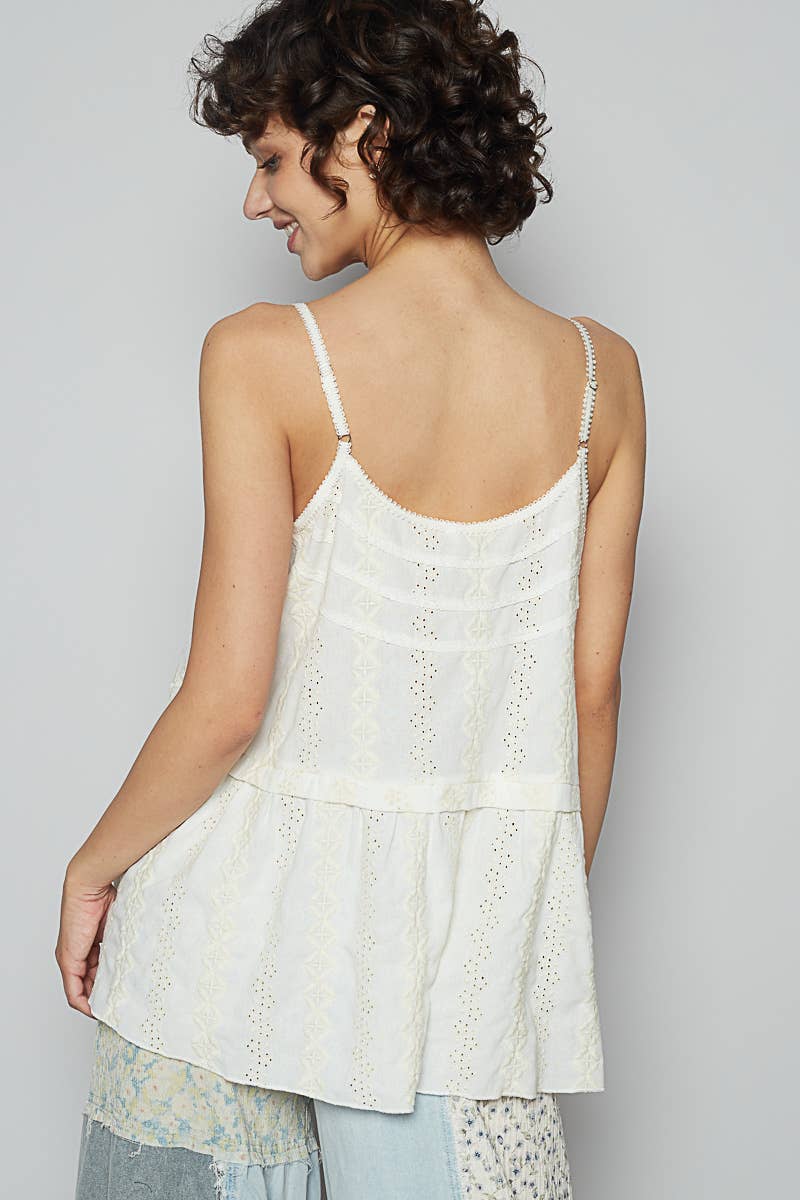 Get ready to embrace the sun with our Embroidered Linen Tank Top! This round neck, sleeveless top features delicate embroidery and trim detailing for a touch of elegance. With adjustable straps and a stretchable fit, it's as comfy as it is stylish. It's perfect for any occasion.
