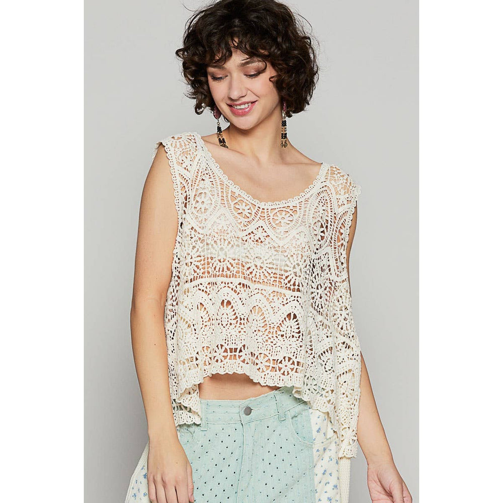 Unleash your inner bohemian with our Crochet Tank Top by POL Clothing. This versatile piece boasts a trendy round neck design and intricate crochet details, perfect for a summer day out or a casual night in. Embrace your playful side and add a touch of charm to your wardrobe with this top!
