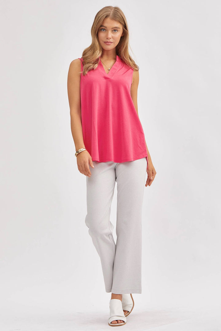 Stay cool and stylish this summer with our Solid Lizzy Tank from Dear Scarlett! This tank features an a-line bodice and split neckline with a mandarin collar, providing a flowy and relaxed fit. It's also non-sheer, stretchy, and wrinkle-free, making it the perfect choice for any warm weather occasion.