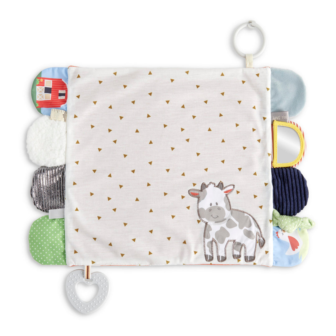 Care for this charming piece is simple: just hang to dry and machine wash on cold. Bring a world of discovery to your child's playtime with the Activity Blankie from the Mommy & Me Collection.