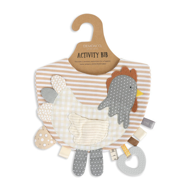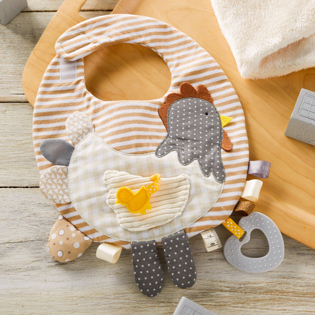 Introducing the Activity Bib by Jennifer Heynen, a delightful creation that embodies the joy of discovery. With a size of 10" w x 11.5" long, this bib is designed with playful details that engage babies as they explore. Crafted from soft cotton and polyester, it features crinkly mylar paper for added sensory fun. Perfect for everyday use, it's easy to care for—simply hang to dry or machine wash in cold water. Elevate mealtime with this charming addition to the Mommy & Me Collection, where every moment is an opportunity for growth and creativity.