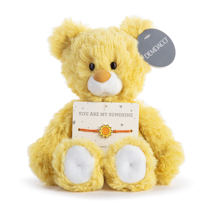 Part huggable bear, part something sparkly to wear! The You Are My Sunshine Yellow Bear - 8in features a snuggly bear with a unique wearable bracelet.