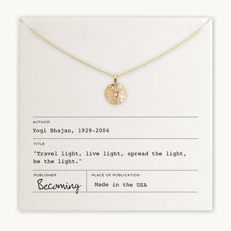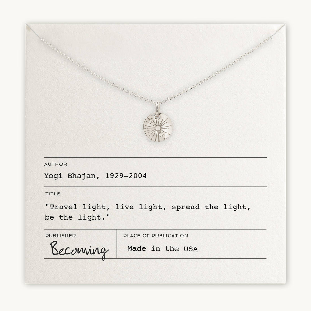 Illuminate your spirit with the Be The Light Necklace. Inspired by Yogi Bhajan's uplifting words, this necklace serves as a beautiful reminder to embrace positivity.