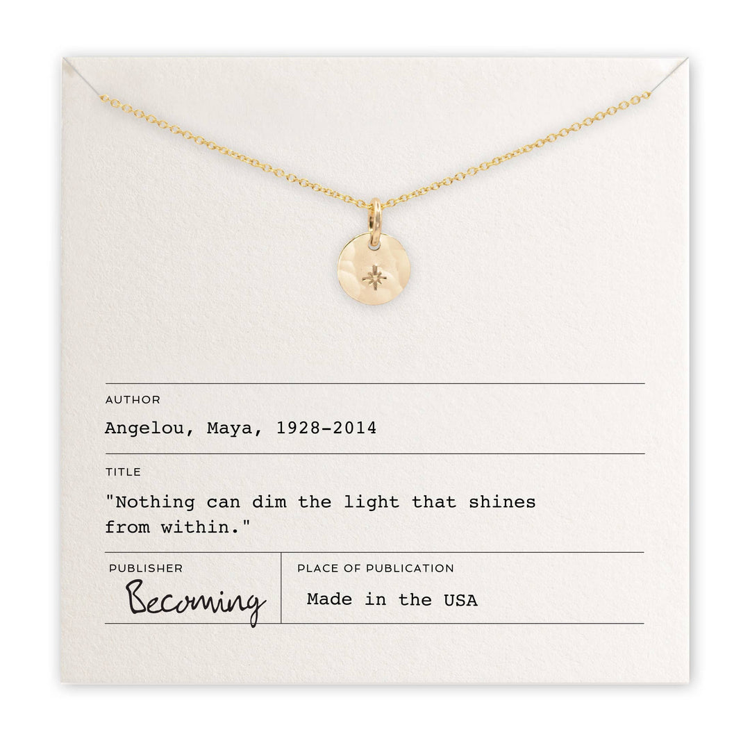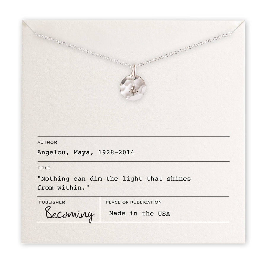 Illuminate your spirit with the Light Within Necklace. Inspired by the words of Maya Angelou, this beautiful piece features a mini starlight charm, radiating positivity and strength. With a length of 18 inches, it hangs gracefully on a fine cable chain. Available in sterling silver or gold filled, it’s the perfect accessory for any occasion.