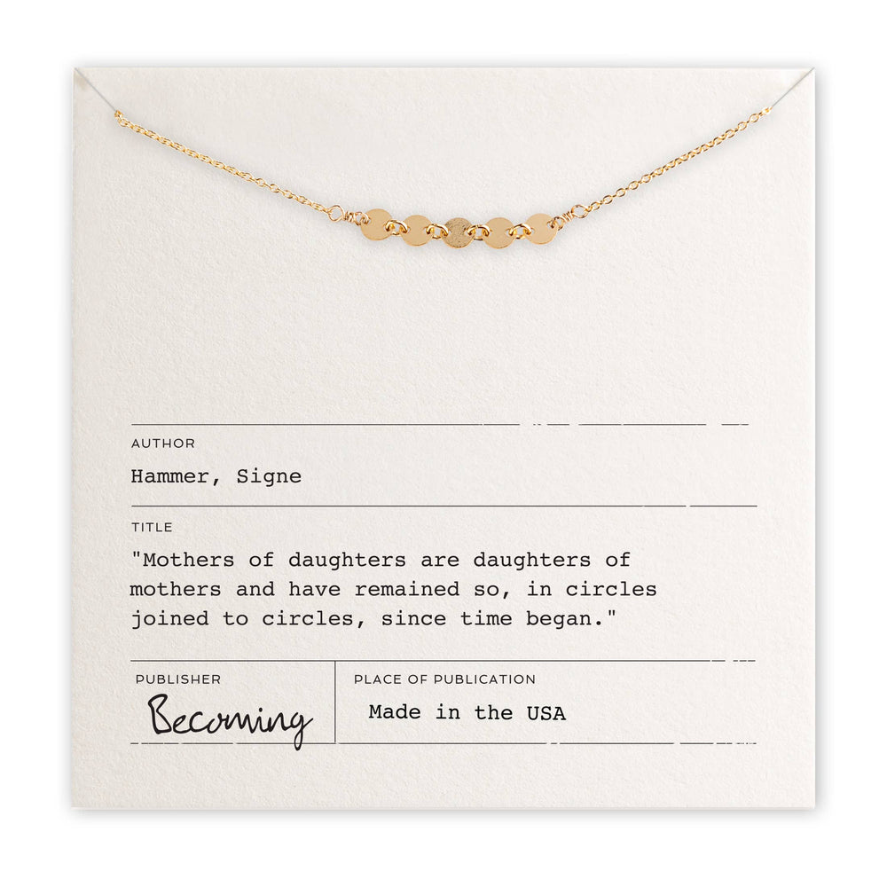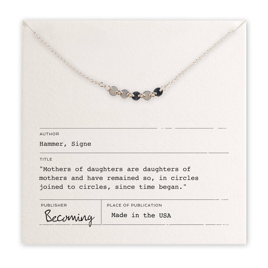 Celebrate the enduring bond between mothers and daughters with the Mothers & Daughters Necklace. This exquisite piece features tiny joined circles, symbolizing the beautiful connection that has existed for generations.