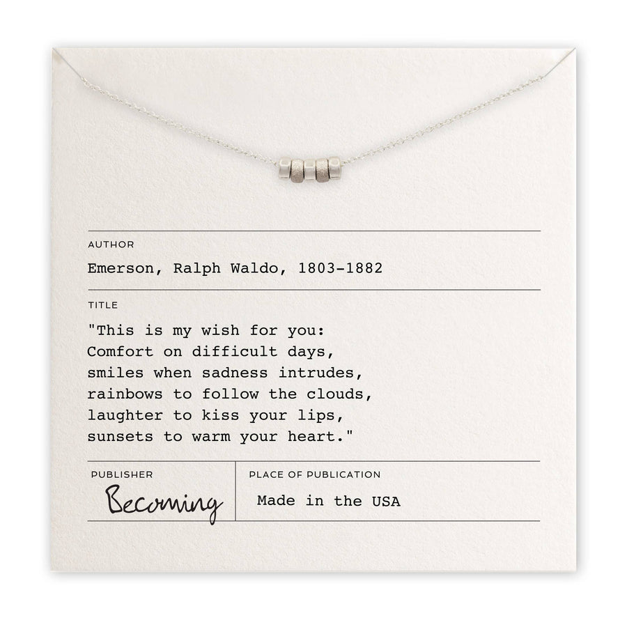 Celebrate the essence of heartfelt wishes with the My Wish For You Necklace. Inspired by the beautiful words of Ralph Waldo Emerson, this necklace serves as a reminder to treasure comfort, joy, and love.
