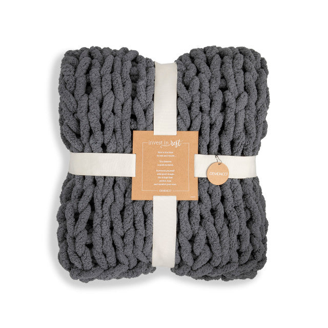 Introducing the Chunky Knit Throw Blanket in Charcoal, where fashion meets comfort. Crafted from super soft, luxurious fabrics, this blanket is part of our Comfort Collection, enveloping you in warmth and tranquility—just like a hug.