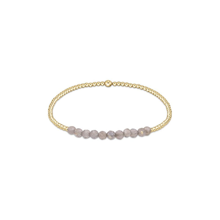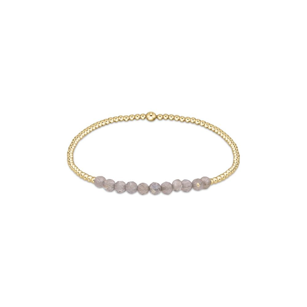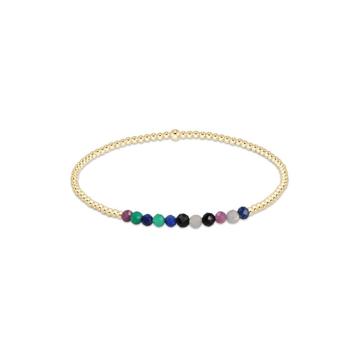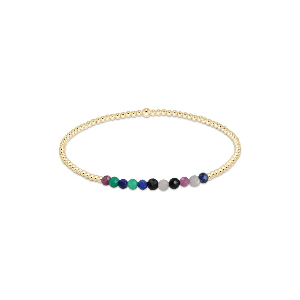 Elevate your accessory game with the Gold Bliss 2mm Bead Bracelet in stunning Gemstones. This exquisite piece features 2mm gemstone beads paired with luxurious 14kt gold-filled beads, perfect for adding elegance to any outfit. Hand-beaded on a durable elastic band, it measures 6.25" for a comfortable fit, making it ideal for everyday wear. Discover the simple beauty of this timeless accessory today.