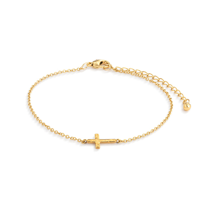 Add some divine charm to your wardrobe with our Gold Cross Charm Bracelet. Plated with 14k gold and water resistant, this bracelet is perfect for everyday wear. Plus, with a 6.5 inch length and an additional 1.5 inch extend, it will fit comfortably on almost any wrist. Amen to that!