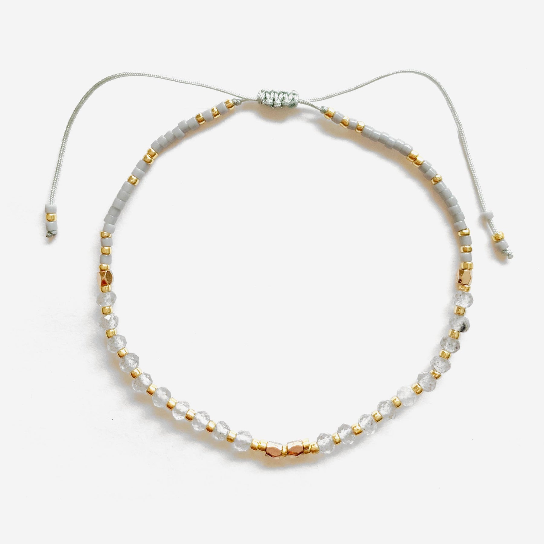 Introducing the Labradorite Healing Gemstone Stacking Bracelet, a stunning addition to your jewellery collection. Handmade with 2-3mm natural gemstones, this bracelet exudes elegance and charm. The adjustable soft cotton cord ensures a perfect fit for all wrist sizes, ranging from 6" to 9".