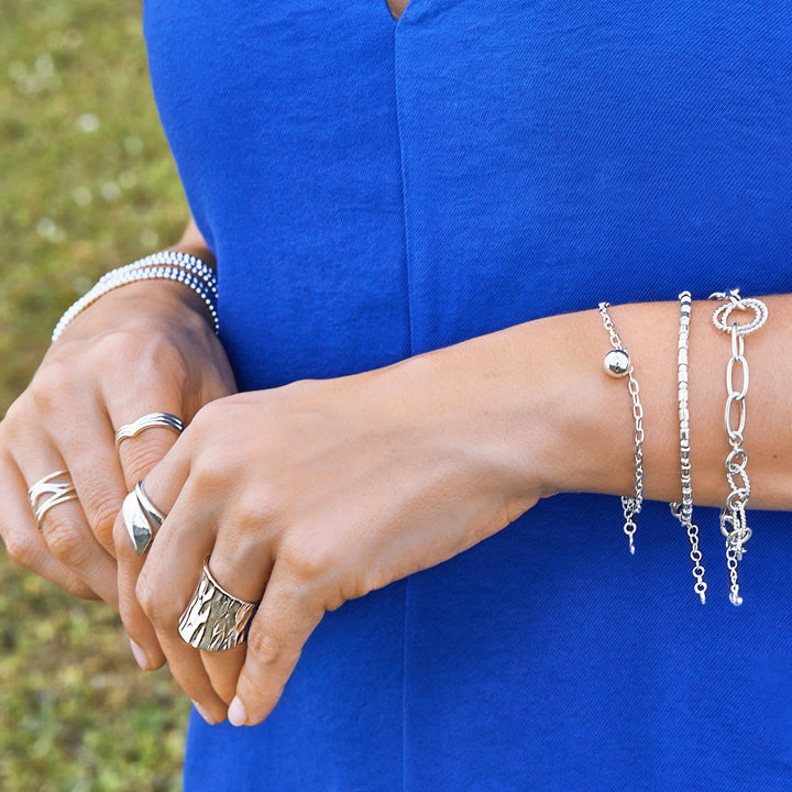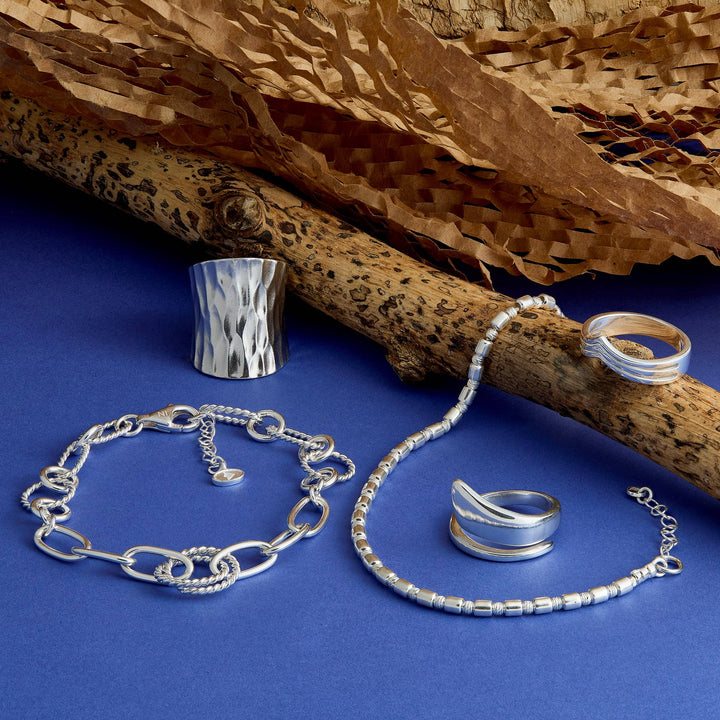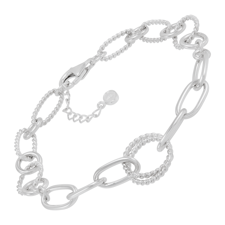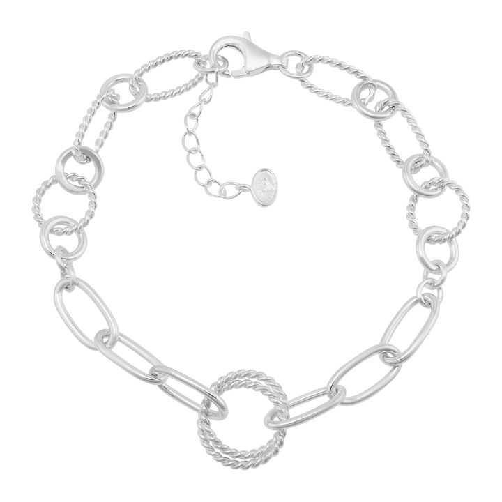 Interlocking textures create rhythm in this sterling silver bracelet, blending polished and twisted links. Its layered loops evoke strength in connection. This bracelet features a modern twist to its classic style. The piece comes with a .925 sterling silver stamp as a symbol of guaranteed product quality.