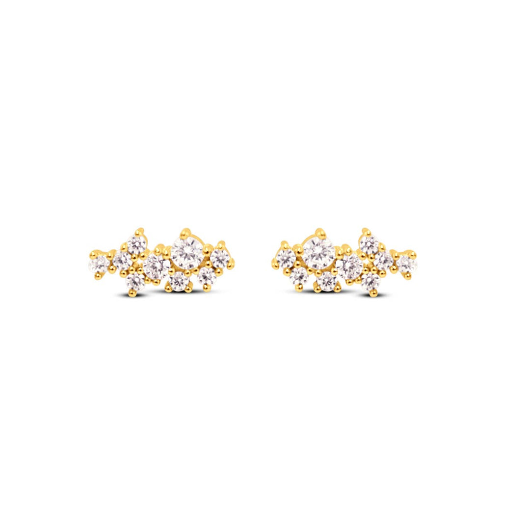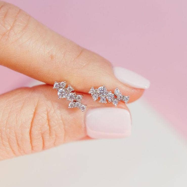 Elevate your style with the Fizz Ear Climbers from Chloe + Lois. Available in sterling silver or 14k gold plated sterling silver, these elegant climbers are adorned with stunning white prong set cubic zirconia stones, measuring 11.9mm x 5.3mm. Experience both comfort and security with a friction backing in a nickel-free design. Add a touch of sophistication to your jewelry collection today.