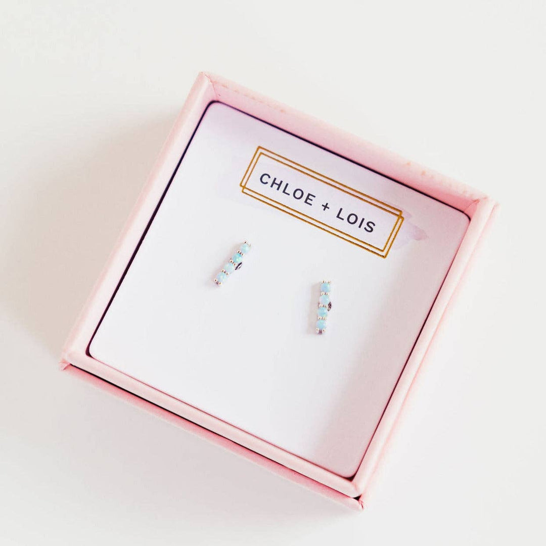 Elevate your style with the Infinity Bar Studs in Opal. Crafted with 2mm simulated opal stones set in sterling silver, these dainty earrings add a touch of elegance to any outfit. Enjoy all-day comfort with friction backing and nickel-free construction, making them a chic and safe choice for everyday wear. Perfect for enhancing both casual and formal looks, these studs are a must-have accessory for your jewellery collection.