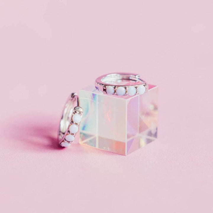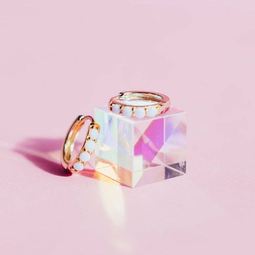Elevate your style with the Little Luxuries Glow Huggie Hoops. Crafted from your choice of 14k Gold Plated Sterling Silver or Solid Sterling Silver, these hoops showcase a stunning white opal detail that catches the light beautifully. With an 8mm inside diameter and 2mm thickness, they offer a comfortable fit that enhances any outfit effortlessly. Experience the luxury you deserve today.