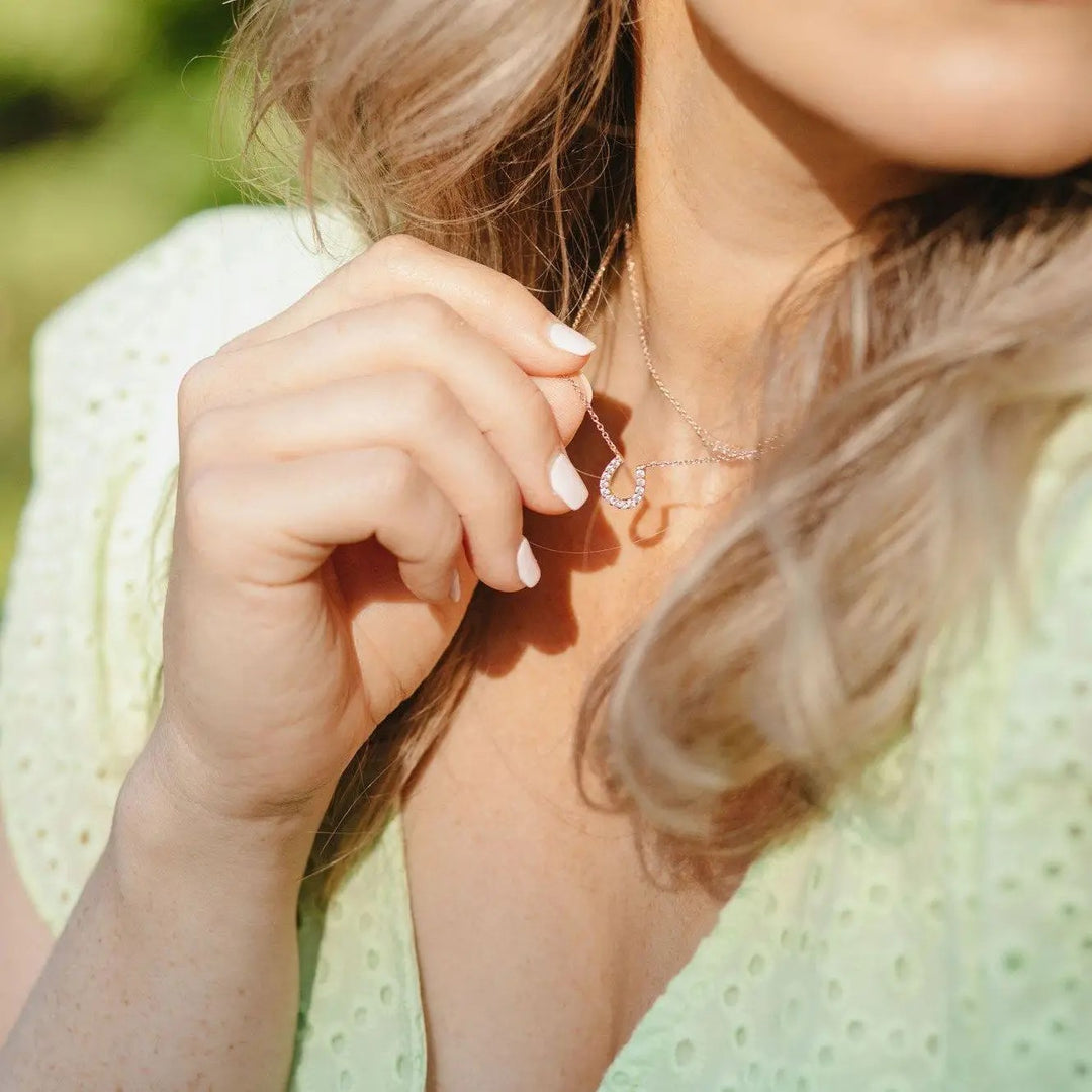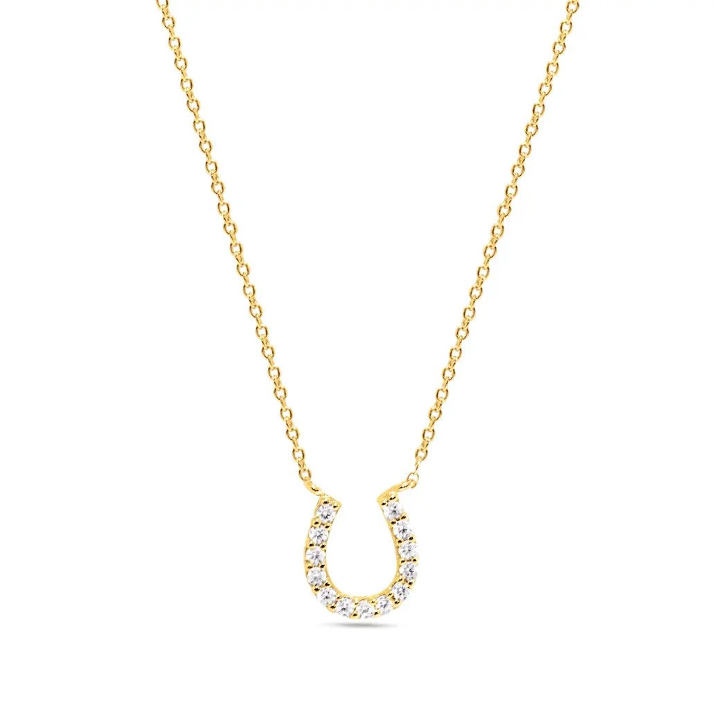 Discover elegance with the Lucky Horseshoe Necklace, expertly crafted in sterling silver, rose gold, or 14k gold plated sterling silver. Adorned with sparkling cubic zirconia stones, this necklace adds a touch of sophistication to any ensemble.