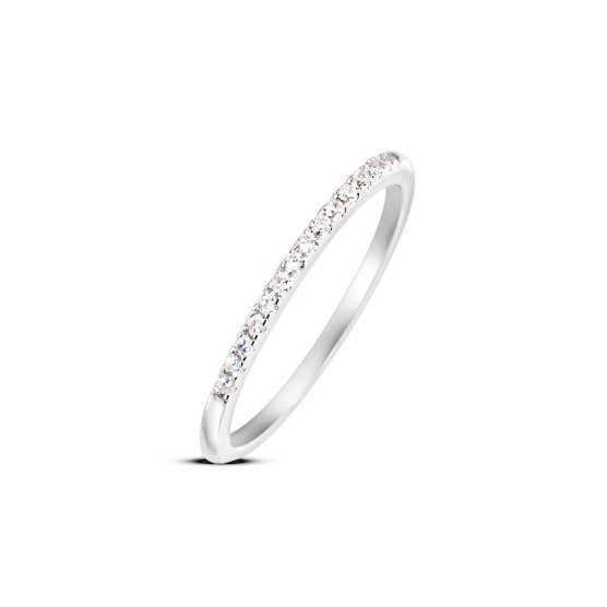 Discover elegance with the Micro Pave Stacking Band, adorned with shimmering 1mm white cubic zirconia stones. This dainty ring is the perfect addition to your collection, offering versatility and style. Choose from a base metal of Sterling Silver, Rose Gold Plated, or 14K Gold Plated Sterling Silver to match your personal aesthetic. Elevate your look effortlessly with this exquisite stacking ring.