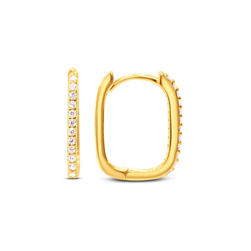 Elevate your everyday elegance with the Oval Micro Pavé Hoops. Crafted in sterling silver or 14k gold plating, these earrings showcase white pavé set cubic zirconia, adding just the right amount of sparkle to any outfit. With a sleek 1mm width and 13mm height, plus a secure hinge closure, they're designed for both style and practicality. Perfect for any occasion, these versatile hoops are a must-have accessory.