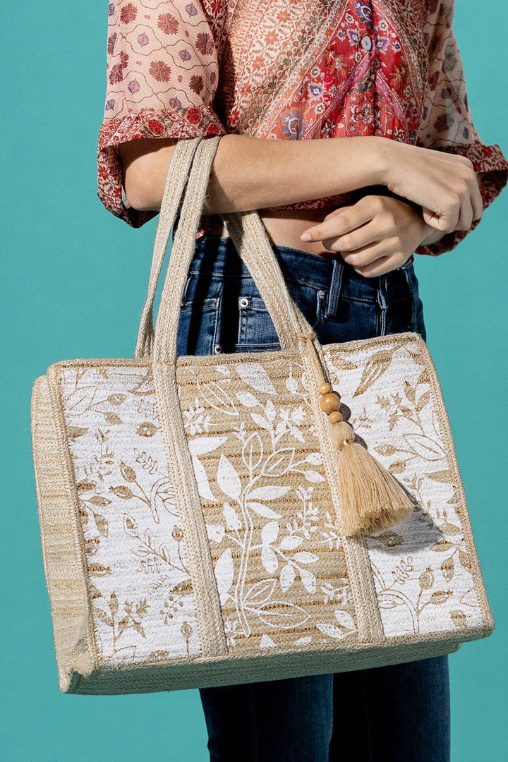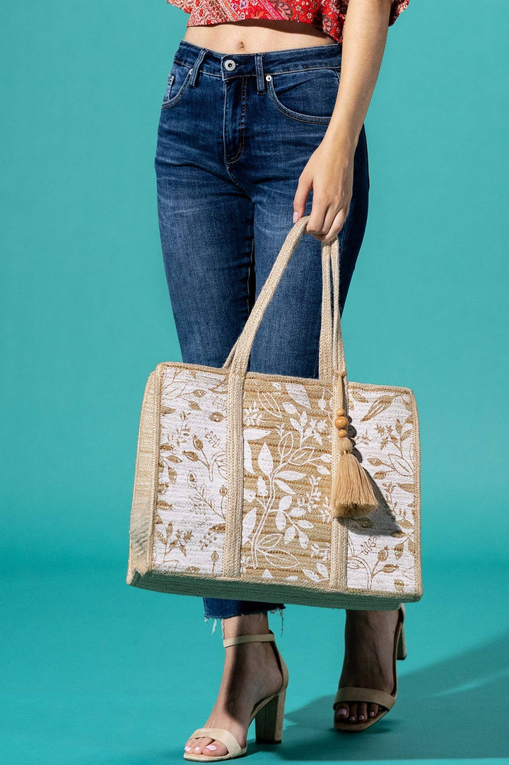 Embrace eco-friendly fashion with the Anne Jute Shoulder Bag. This stunning yet simple bag features durable Jute straps and a spacious design, ideal for a day at the beach or a market run. Made in India with 90% Jute and 10% Polyester, and a 100% Cotton lining. Approx. 12" L, 15" W, and weighs only 2.27 lbs. Practical and chic, this bag will be your go-to companion for any adventure.