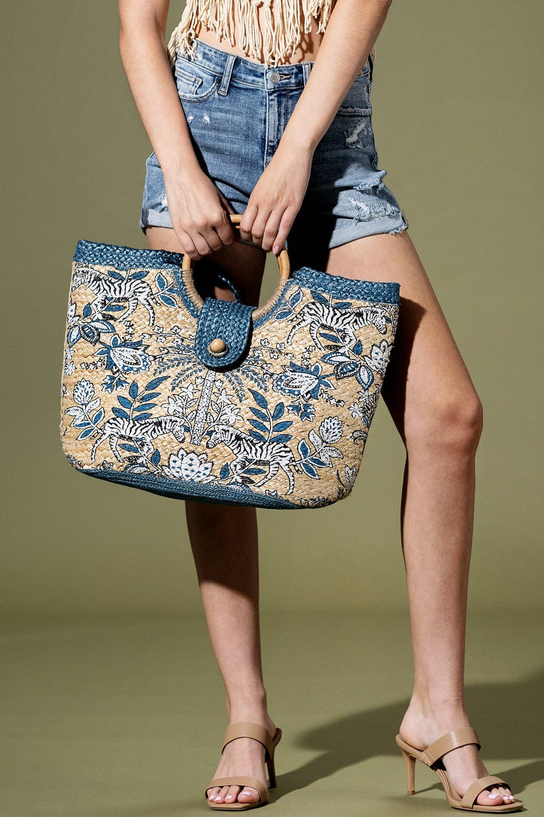 Elevate your everyday with the Mojo Jute Bag! Made from 100% natural jute and cotton lining, this tote features a wooden handle and comfortable shoulder strap. The classic floral pattern and magnetic flap provide both style and security. Perfect for carrying your essentials in eco-friendly style. Made in India.
