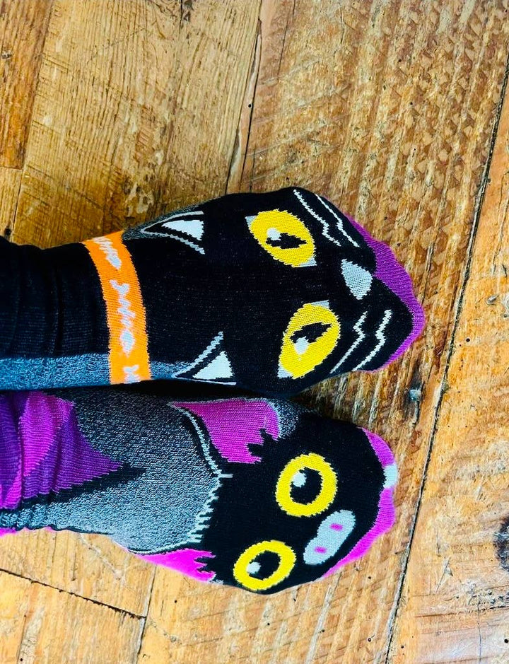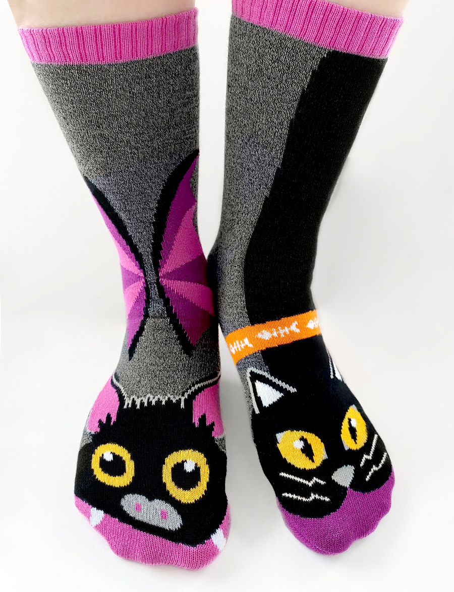 Elevate your Halloween style with our Bat & Black Cat Mismatched Socks for Adults. This limited edition Pals duo is perfect for those who know that friendship doesn’t require matching outfits.