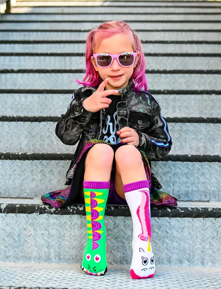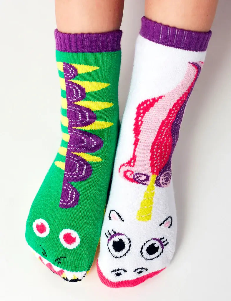 Introduce a touch of magic to playtime with the Dragon & Unicorn Mismatched Non-Slip Socks for Kids. Perfect for little adventurers, these crew-length socks feature enchanting designs woven in for lasting quality.