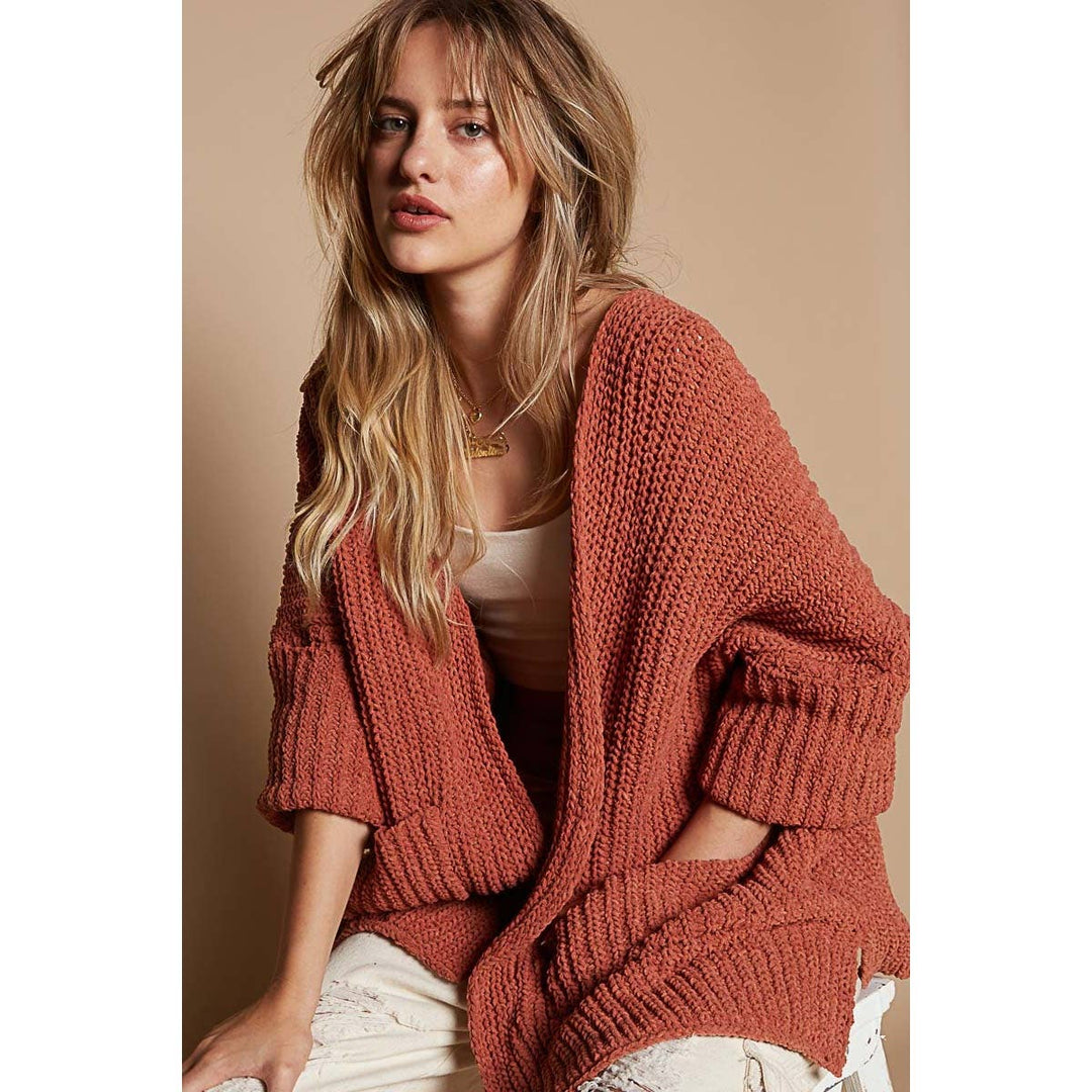 Elevate your wardrobe with our long sleeve pockets solid sweater cardigan. Its edge-to-edge design and convenient pockets provide both warmth and style, making it the ideal layering piece for any occasion. Enjoy a comfy, roomy fit that keeps you looking effortlessly chic while staying cosy. Perfect for adding a touch of sophistication to your everyday look.