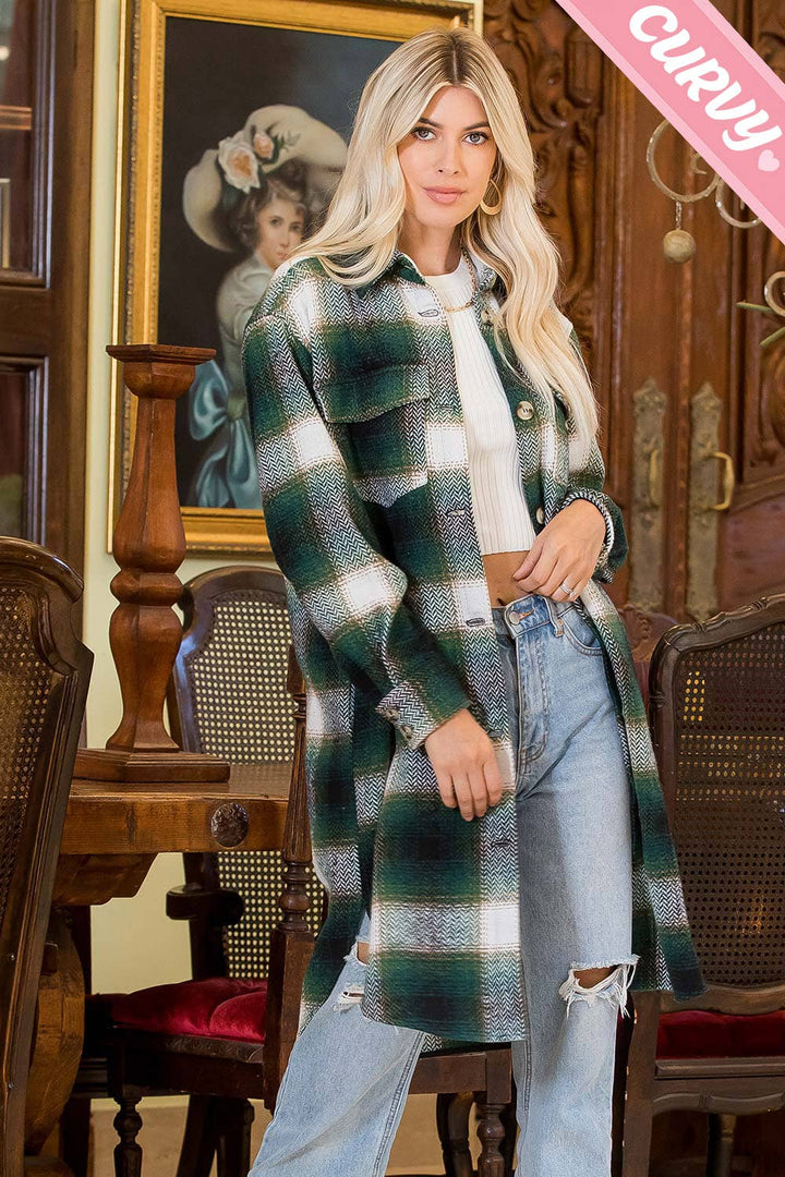 Introducing the Shacket - Plus Size, a versatile woven fabric plaid shirt coat perfect for any occasion. Its relaxed fit and front button closure make it ideal for both casual daytime adventures and stylish night-time outings. With functional chest pockets, welt front pockets, and a flattering round hemline, this coat combines warmth and fashion seamlessly. Elevate your winter wardrobe with this must-have piece.