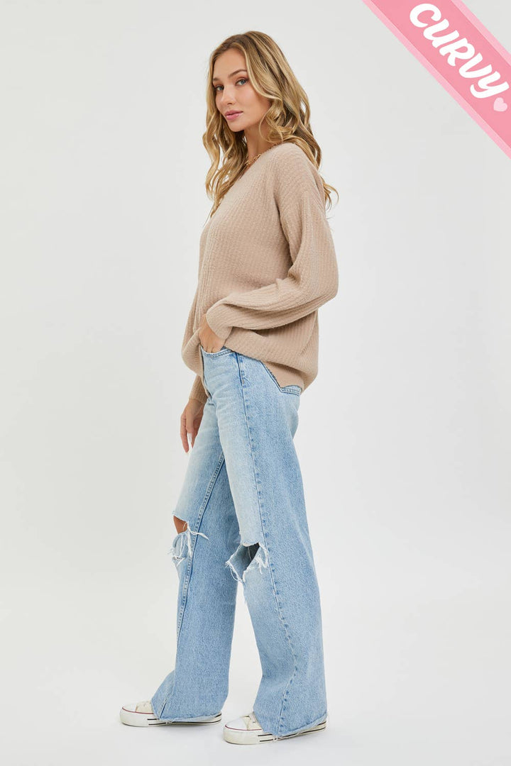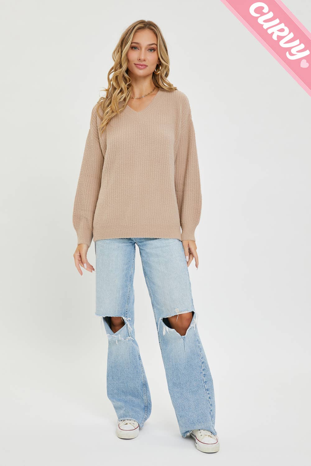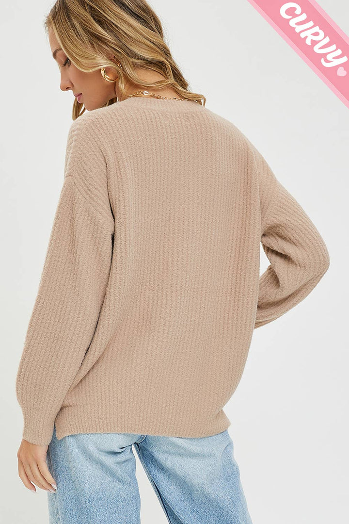 Elevate your everyday style with the Soft Knit Sweater - Plus Size. This cosy, chic pullover combines a timeless silhouette with stretchy, soft knit fabric for effortless comfort. Featuring a drop shoulder design and long sleeves, this bestseller is perfect for a relaxed look on any occasion. Embrace casual elegance with this must-have addition to your wardrobe.