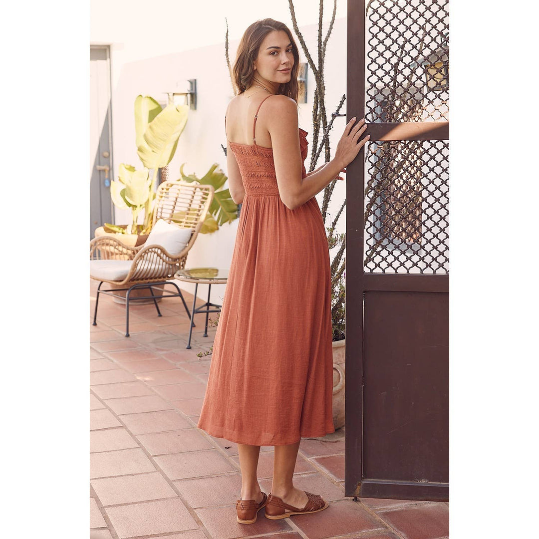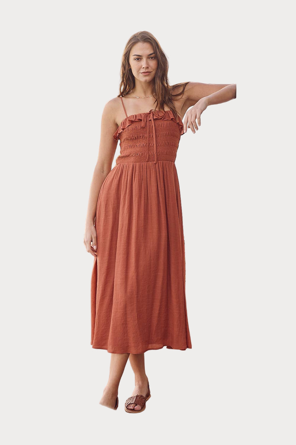 Effortlessly chic and playful, our Smocked Ruffle Top Dress features adjustable shoulder straps and a ruffle designed top front for a unique touch. The banded back adds a flattering fit, and the soft rayon and polyester blend will keep you comfortable all day. Perfect for any occasion!