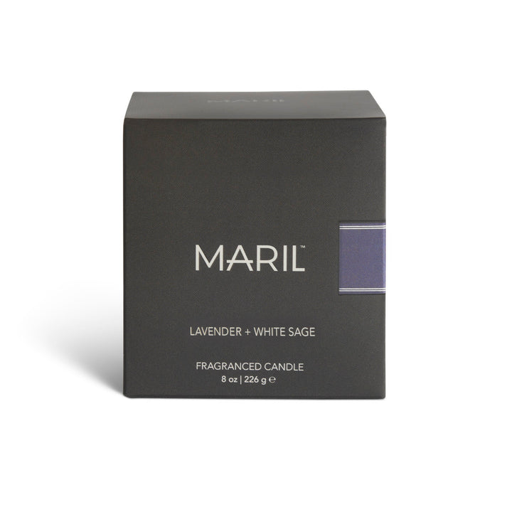 Transform your space with the Lavender + White Sage 8 oz. Candle by MARIL. Infused with the calming essence of true French lavender and sage, this candle creates a serene atmosphere while a warm cedarwood base envelops you in comfort.