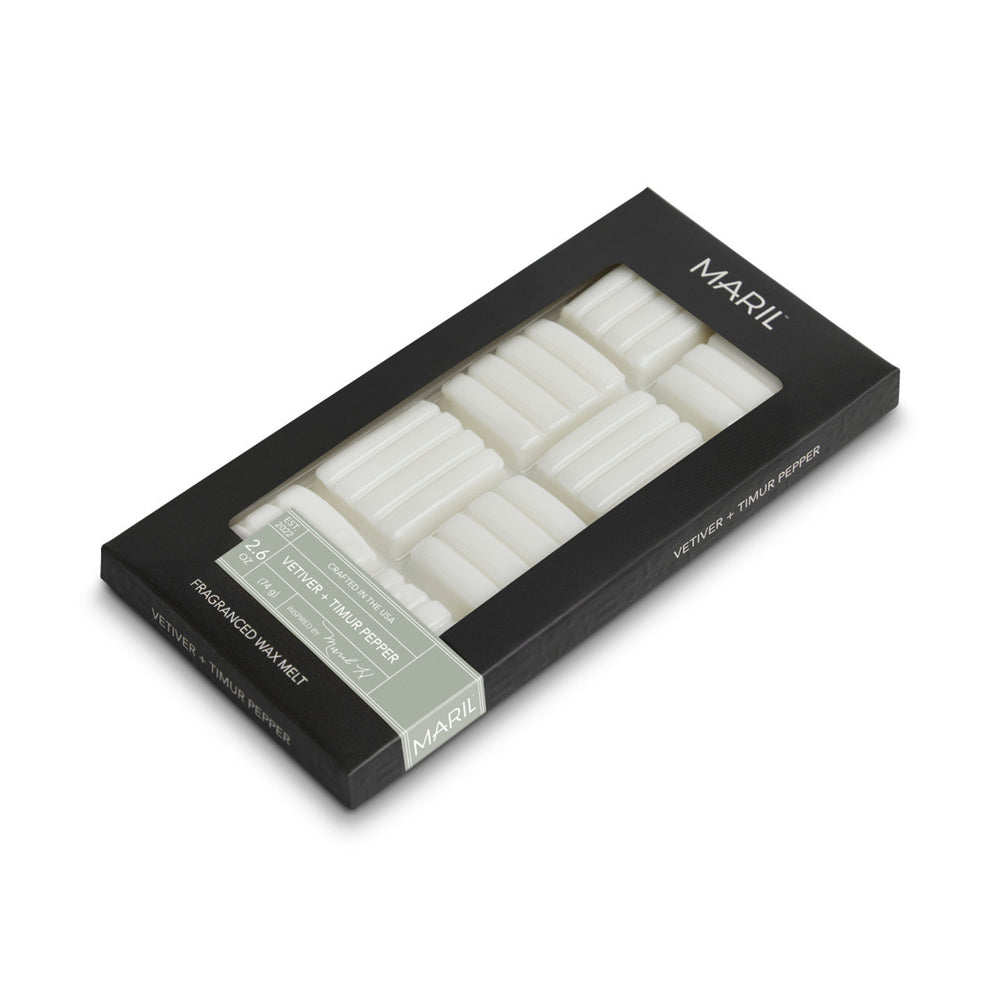 Discover the Vetiver + Timur Pepper Wax Melt by MARIL, a sensory journey crafted from natural ingredients. This blend captures the essence of exotic escapes with its woody green notes harmonising with the spicy profile of Timur pepper and shiso leaf.