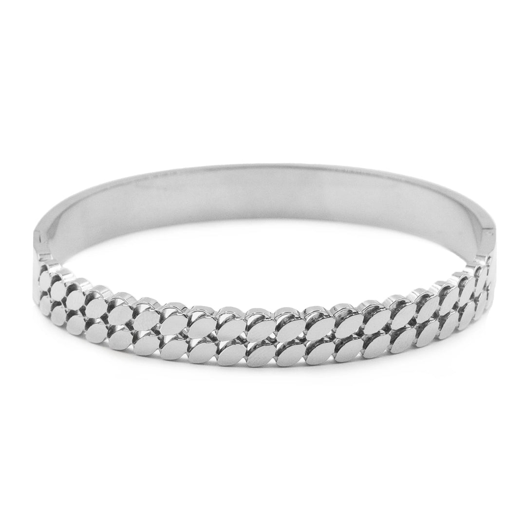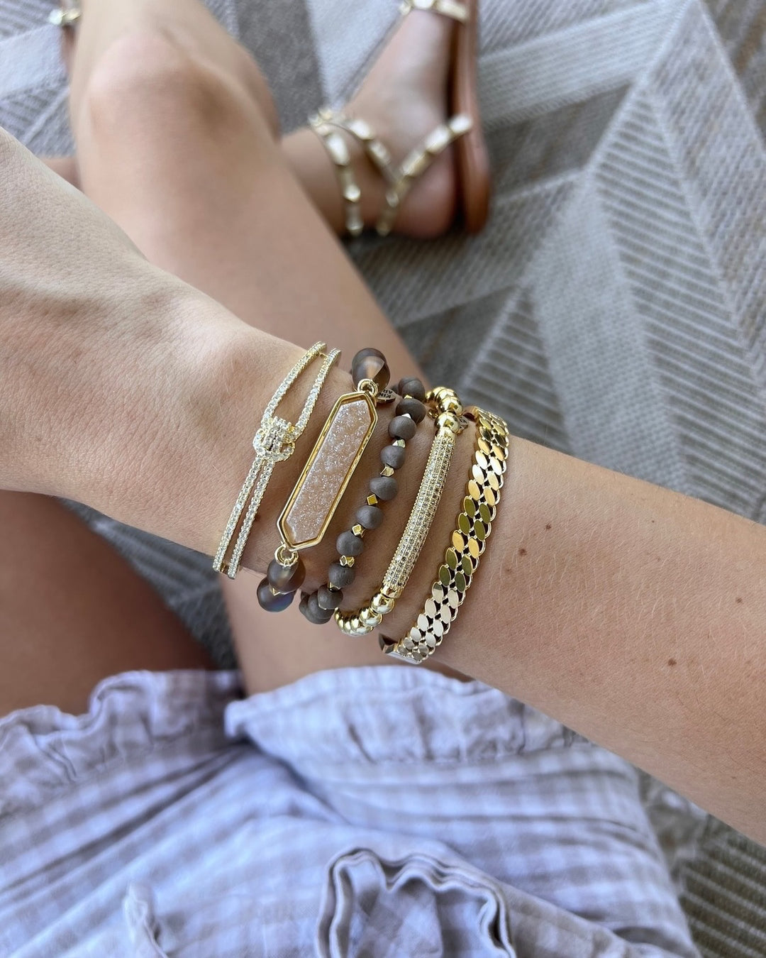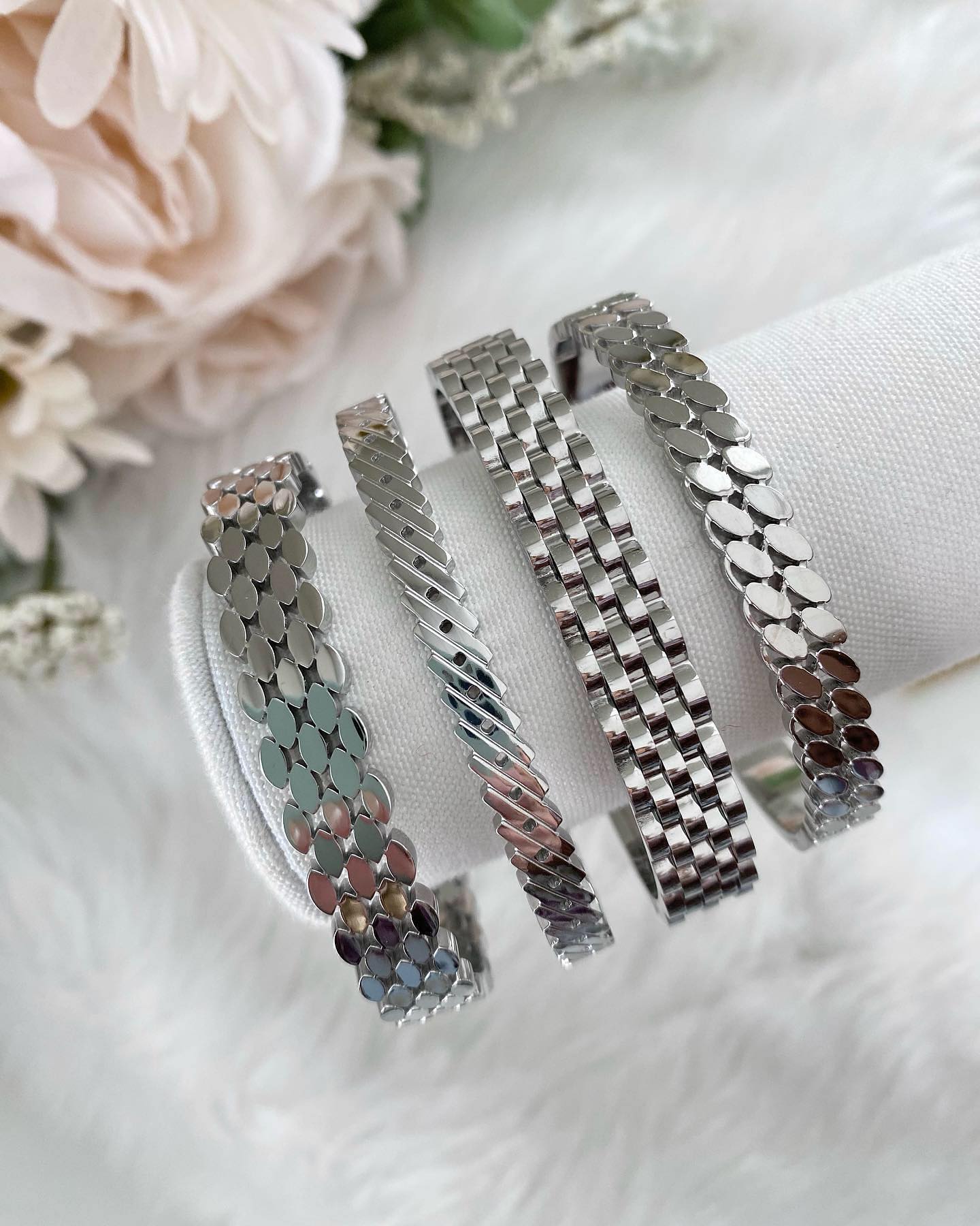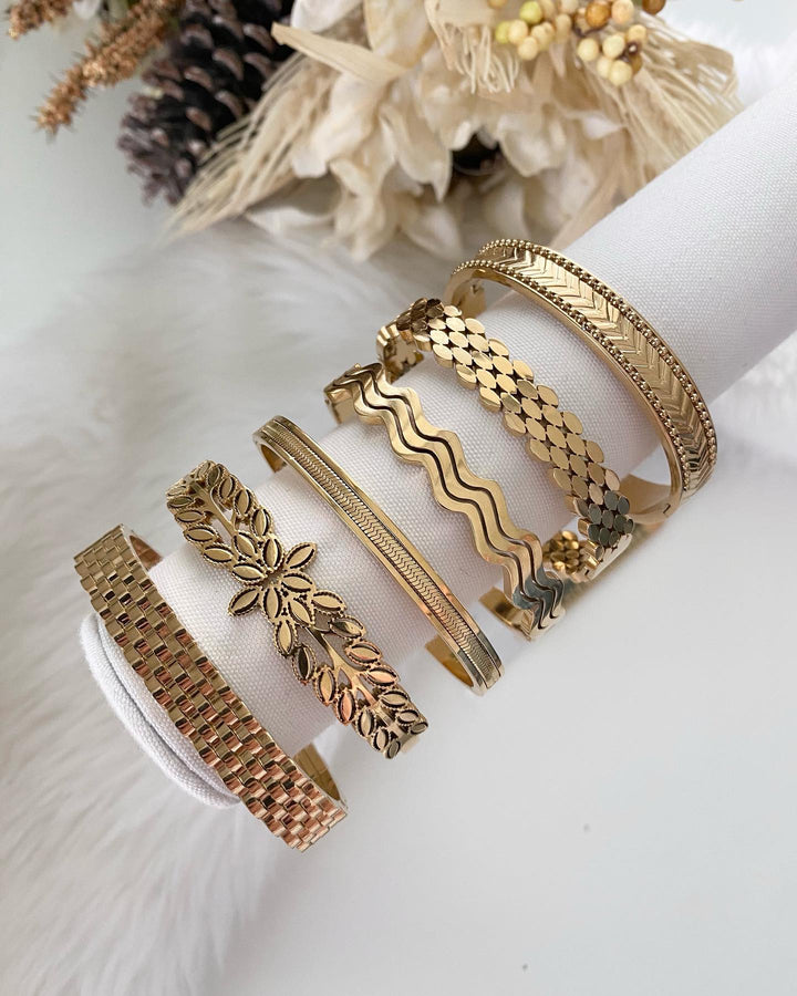 Introducing the Aya Bracelet, a stunning accessory that combines elegance and style. Crafted with geometric shapes on a silver or 14K ion plated stainless steel cuff, this bracelet is both hypoallergenic and adjustable from 6.25 to 7.25 inches, making it ideal for those with sensitive skin. Elevate your collection with the Aya Bracelet – a perfect blend of versatility and sophistication.