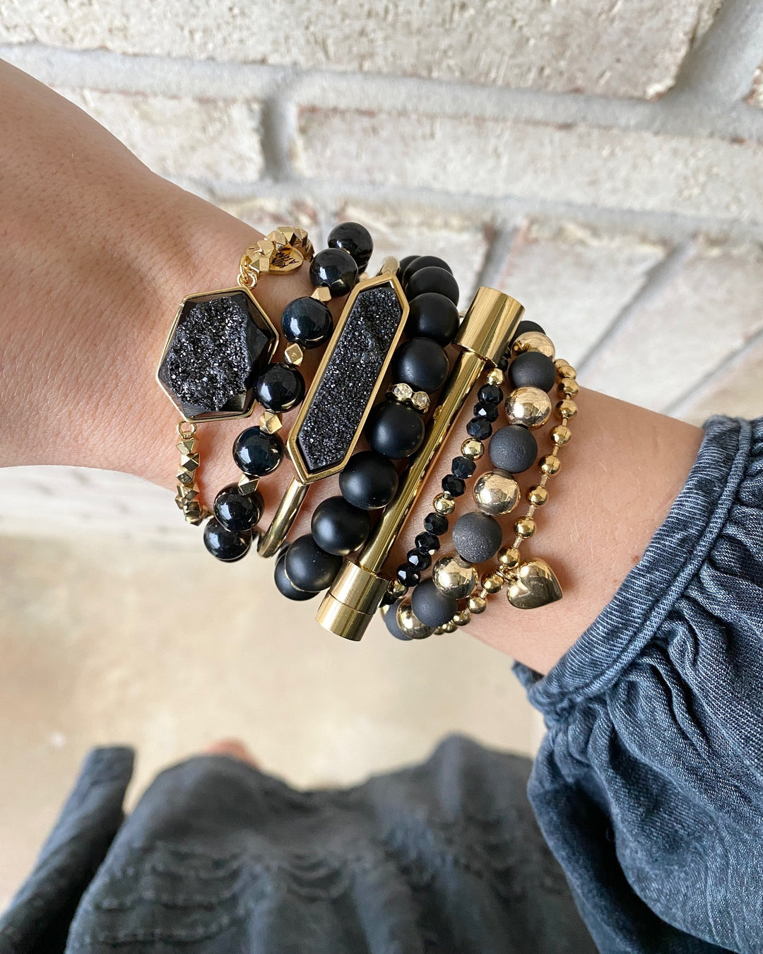 Elevate your style with the Bar Bracelet, a chic piece designed to perfect any outfit. Featuring a unique locking bar accent, this bracelet exudes sophistication and charm. Crafted from hypoallergenic silver and 18K gold ion plated steel, it's ideal for those with sensitive skin. Its adjustable size ensures a comfy fit for all occasions. Add a touch of elegance to your accessory collection with this stunning bracelet.
