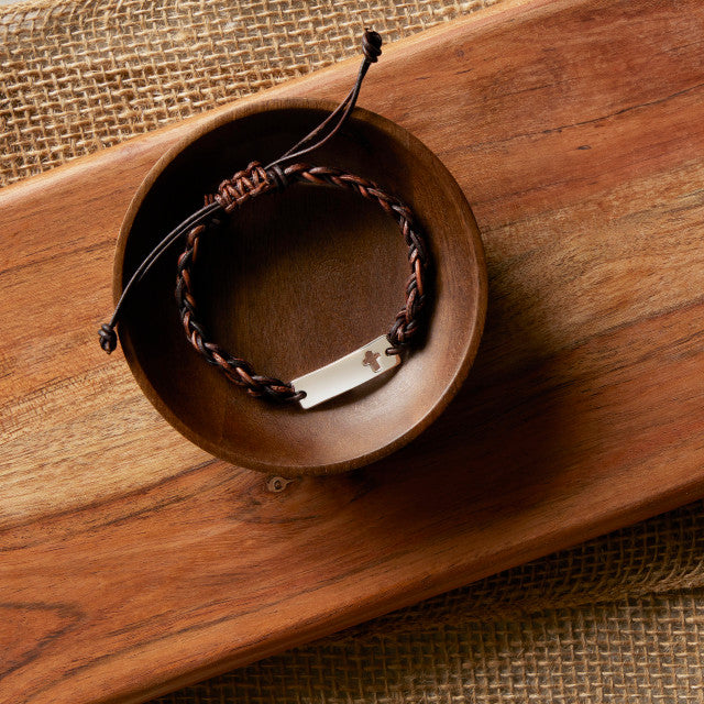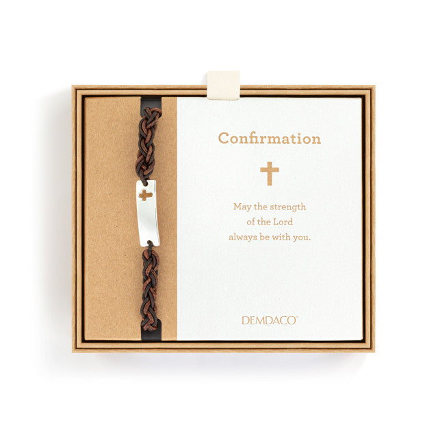 Celebrate the power of faith and gratitude with the Confirmation Bracelet from our Tender Blessings collection. This beautifully crafted piece features a 5" diameter adjustable design, made from quality metal and leather. Perfect for honouring meaningful moments, this bracelet serves as a cherished reminder of blessings and the source of all good things. Embrace the spirit of celebration with this heartfelt accessory.