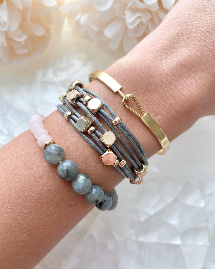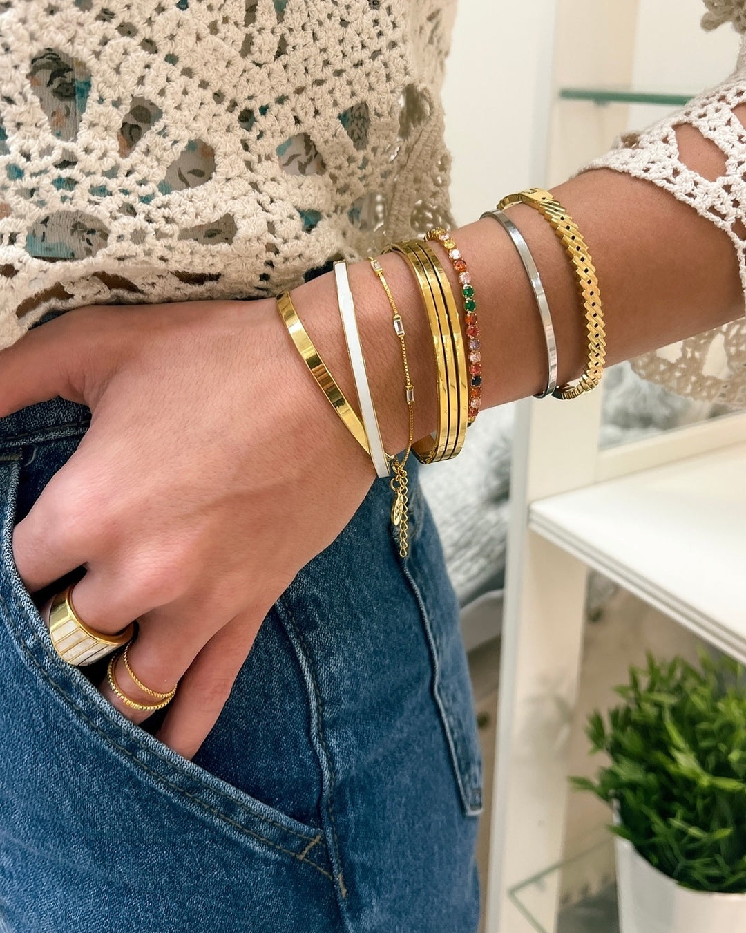Elevate your style with this stunning cuff bracelet, featuring a unique loop hook accent. Crafted from silver ion plated stainless steel and 18K yellow gold ion plated stainless steel, it combines elegance with durability. With a circumference of 6.25-7.25 inches, it fits most wrists perfectly. Hypoallergenic and ideal for sensitive skin, this bracelet is a must-have addition to your accessory collection.