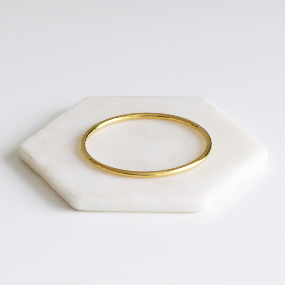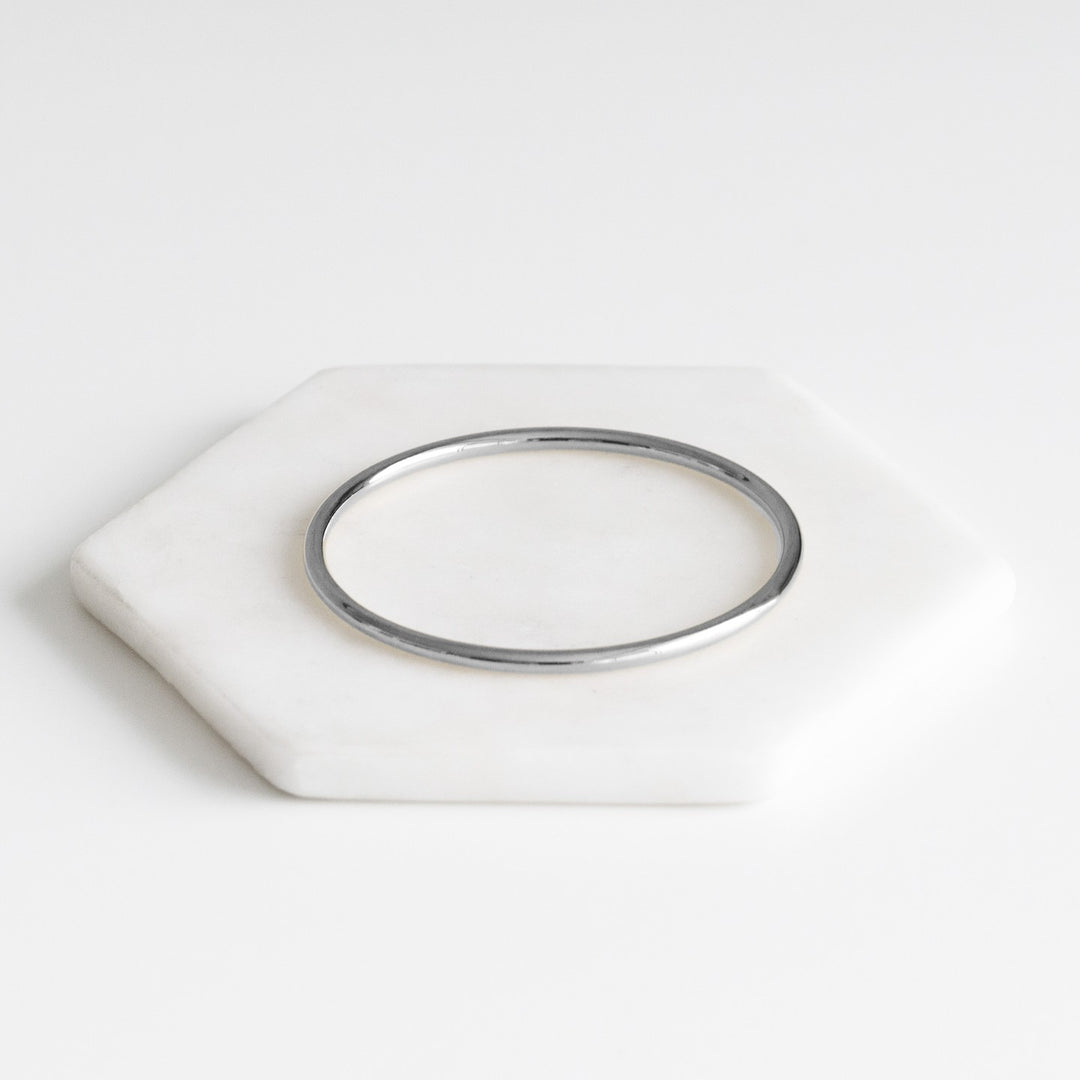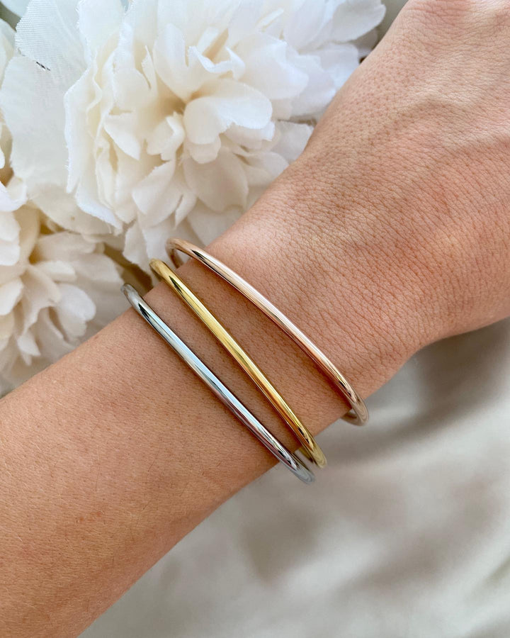 Elevate your accessory game with the Eliza Bangle Bracelet. Crafted from hypoallergenic silver or 14K gold plated stainless steel, it showcases intricate geometric shapes that bring an elegant touch to any outfit. Available in two sizes, the Eliza ensures a comfortable fit for everyone. Ideal for sensitive skin, this bracelet is a must-have addition to your jewellery collection.