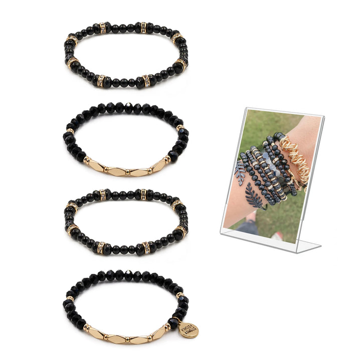 Elevate your style with our stunning Stacked Bracelet Sets. Featuring 6mm glass beads and decorative accents, these versatile pieces are perfect for any occasion. Hypoallergenic and suitable for sensitive skin, they range in size from 6.25 to 7.25 inches, ensuring a comfortable fit. Available in several styles and colours, these elegant accessories are a must-have for your jewellery collection.
