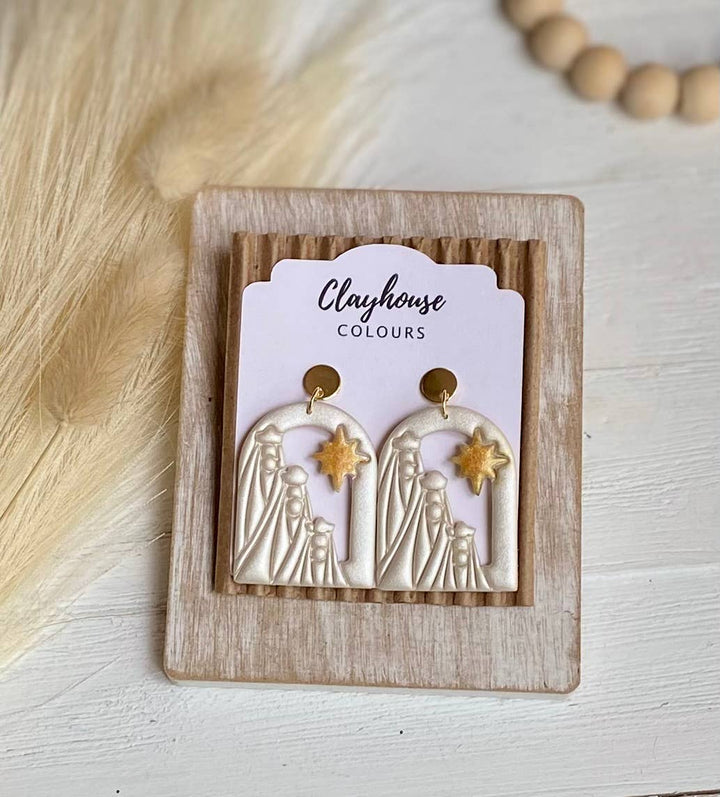 Elevate your holiday style with the Three Wise Men Clay Earrings, exquisitely handcrafted to bring festive cheer. These lightweight, hypoallergenic hoops are perfect for sensitive ears, ensuring comfort without sacrificing elegance. Each piece is uniquely designed and crafted in our TX studio using custom blended colours, resulting in one-of-a-kind earrings.