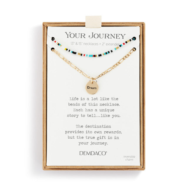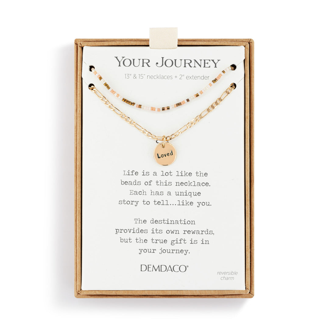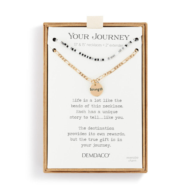 Discover the Your Journey Beaded Necklace - Strength, a beautiful piece crafted to honour your past and inspire your future. This stunning necklace features semi-precious stones and a blend of materials including metal, brass, iron, and glass.