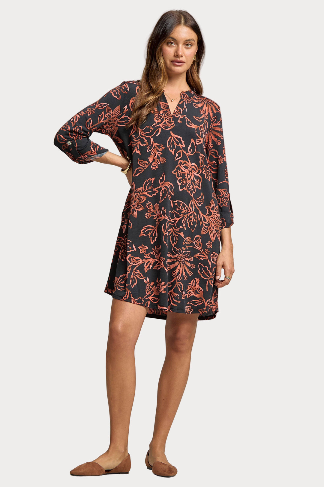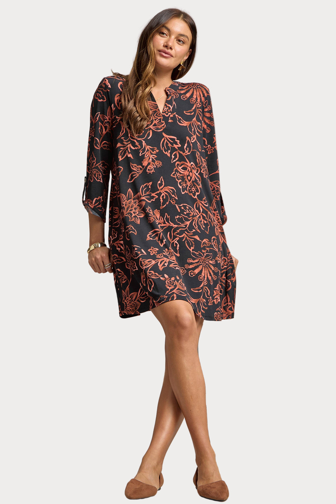 Meet your new favorite dress! This stylish A-line dress features a chic floral print, a flattering split neckline, and best of all—pockets. An effortlessly versatile and comfortable choice for any occasion.