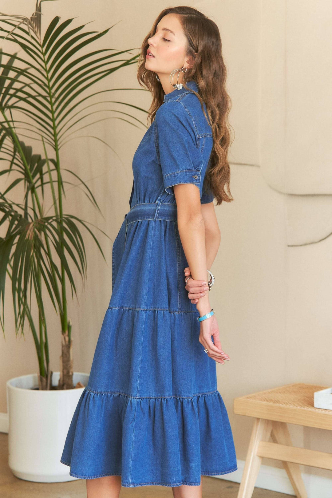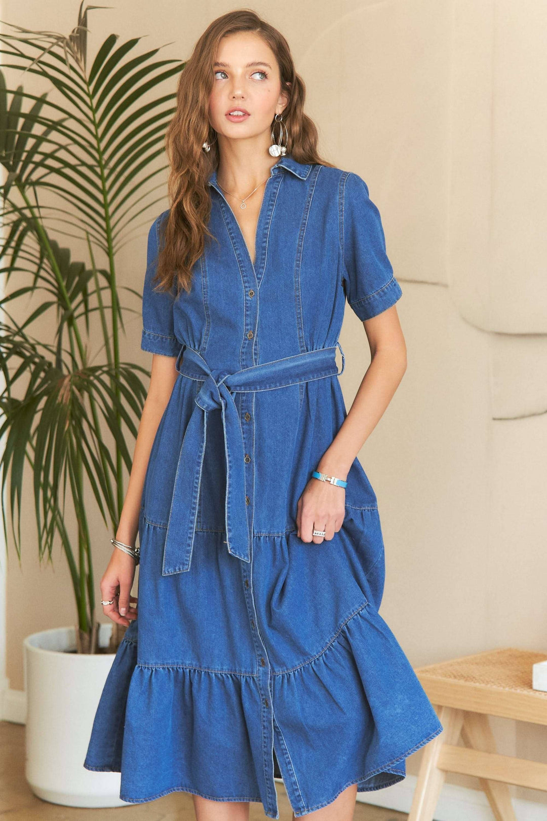 **The Harper Belted Denim Midi Dress | Casual & Classic**