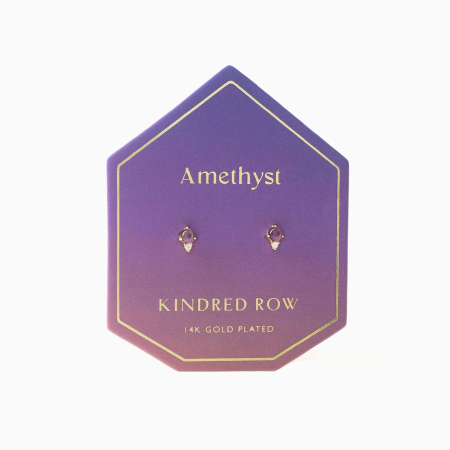 Elevate your style with our Amethyst Gemstone Stud Earrings. Featuring a stunning 3mm amethyst stone paired with a sparkling 1.5mm cubic zirconia, these earrings offer a total height of 5mm, perfect for a touch of elegance. Crafted with care, they are plated in luxurious 14k gold and come as a lovely pair. Each set is beautifully packaged on a gold foil colour earring card, making them an ideal gift or a treat for yourself. Add a hint of sophistication to any outfit with these exquisite earrings.