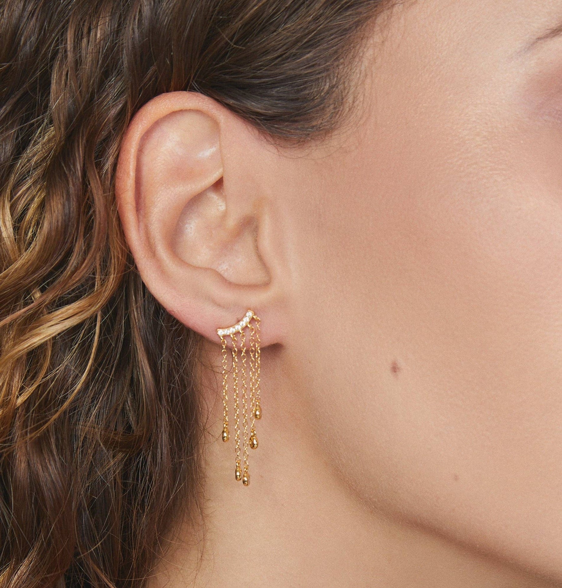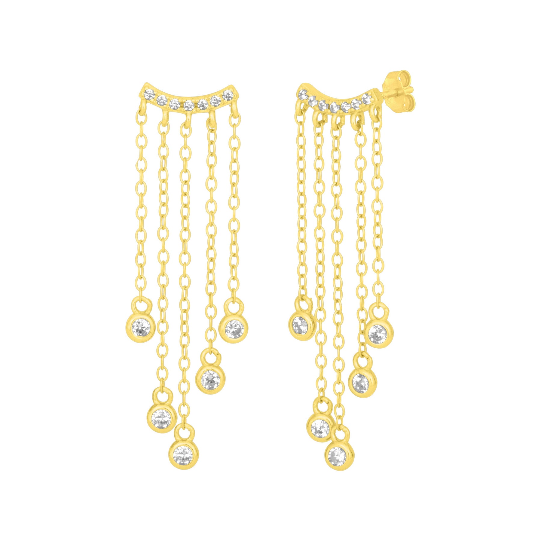 Adorned with delicate dangling chain and cubic zirconia pave, our Cleo earrings dress up any look.