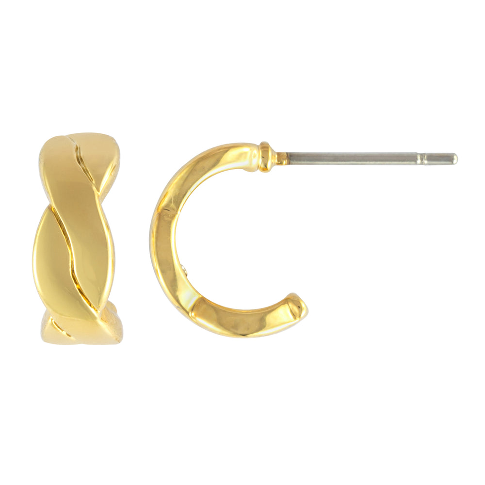 Add a twist to your style with our Gold Braided Hoop earrings. Made with water resistant 14k plated metal, these hoops are not only stylish but also hypoallergenic. Don't let allergies hold you back from looking fabulous!