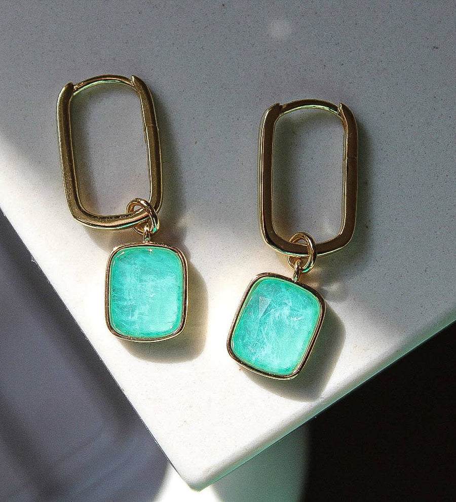 Introducing Luxe Cushion Hoops in Capri Dream – a perfect blend of effortless elegance and versatility. These stunning hoops feature a removable elongated cushion charm, allowing you to switch between two looks effortlessly. The unique Capri Dream stone showcases an intense blue-green glow that sets you apart.