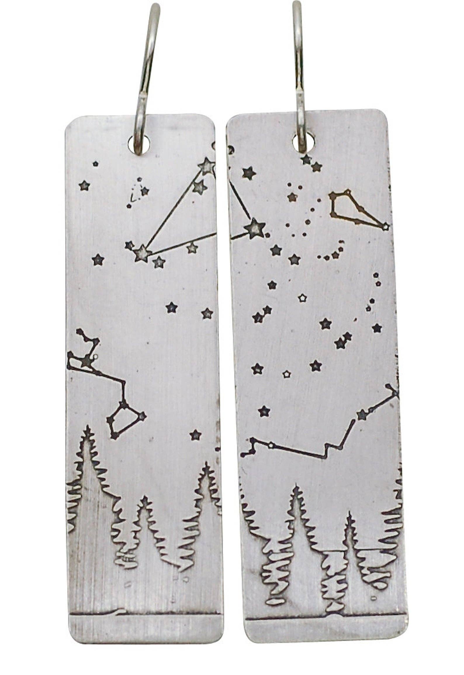 Infused with the artistry of the natural world and the wonder of the night sky, these Printed Dangle Earrings feature original etched designs inspired by forest trees and celestial constellations. Each detail is meticulously imprinted on recycled sterling silver, creating a sustainable statement piece that feels both grounded and ethereal.