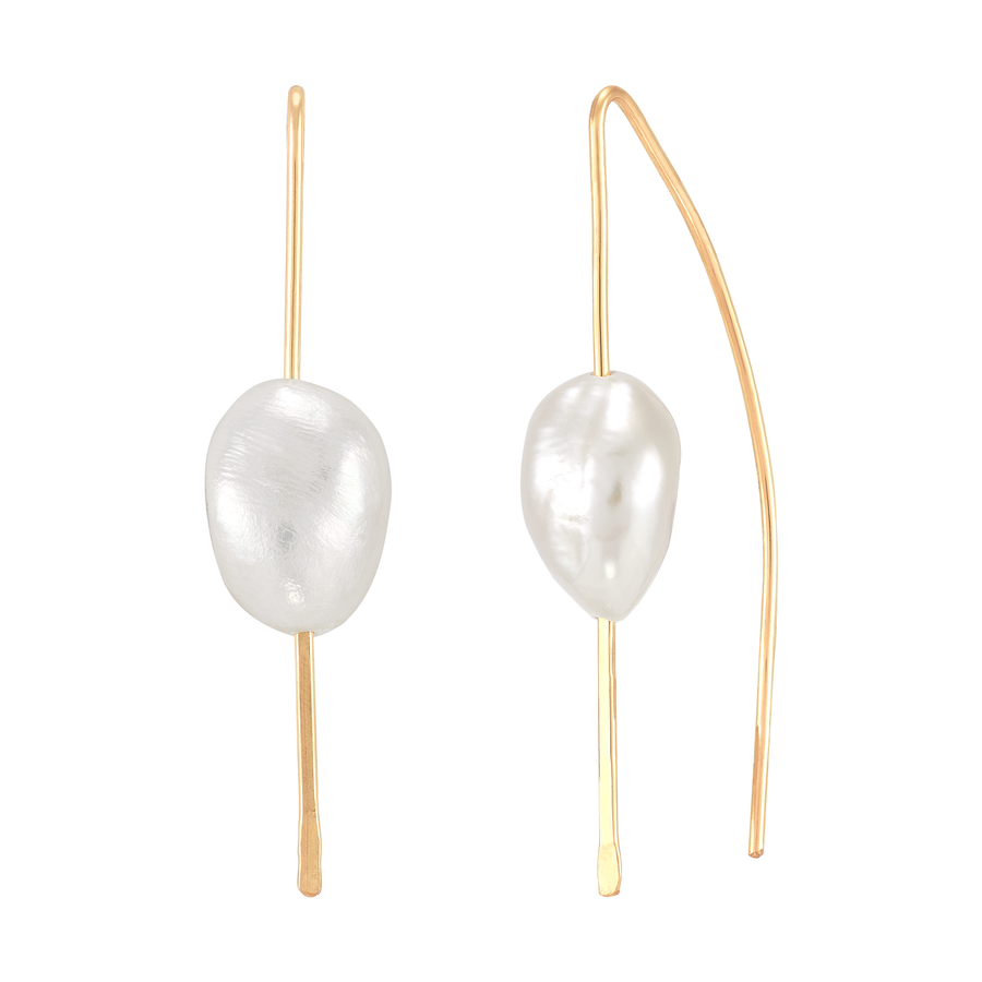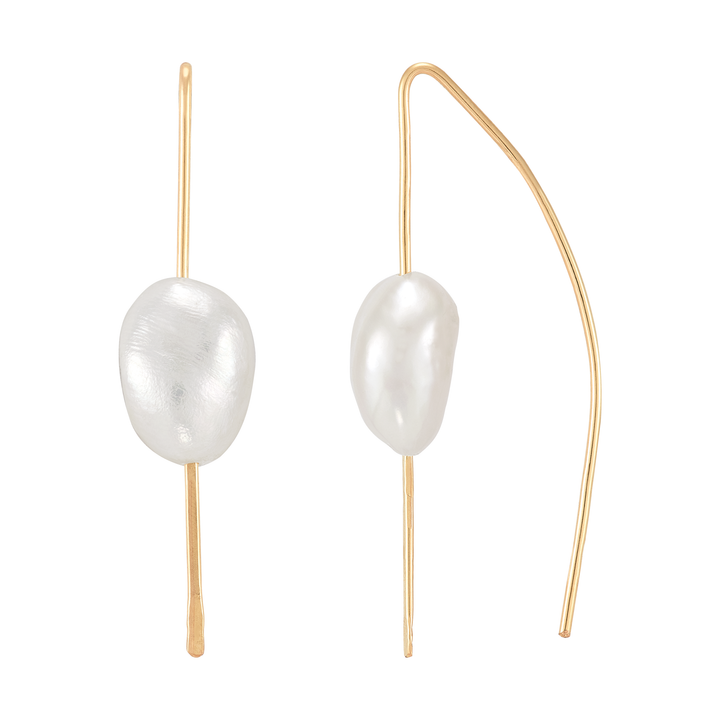 These drop earrings are made to be extraordinary! The 14K gold plated silver earrings feature 10-11mm freshwater pearls that will captivate every eye in the room! These iridescent pearls showcase natural beauty that is both timeless and enchanting. The pieces come with ''.925'' sterling silver quality stamps as symbols of guaranteed product quality.