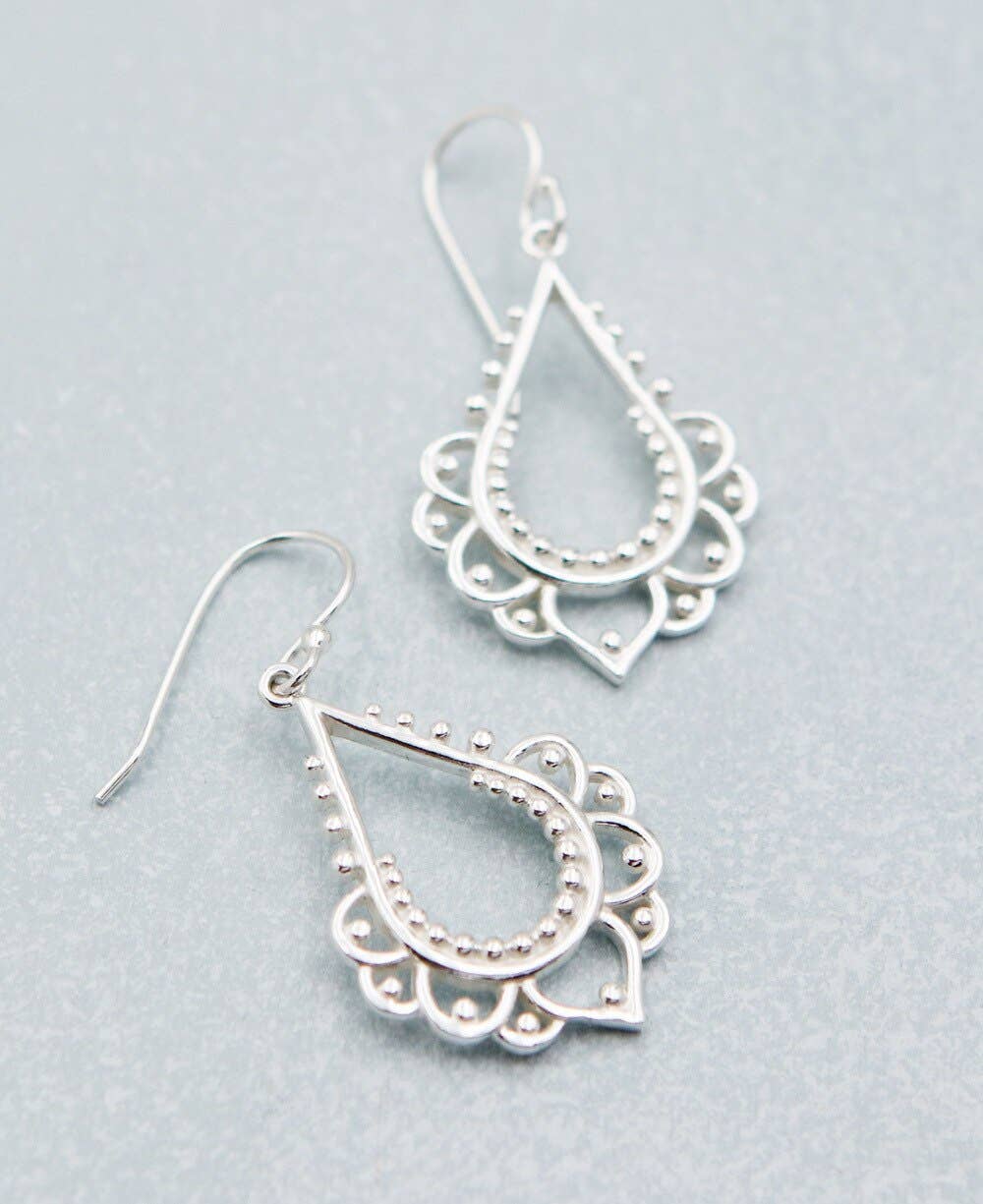 Enhance your look with the Sterling Silver Beaded Lotus Earrings. With a lustrous finish and intricate granulated details, these earrings bring elegance to any ensemble. Measuring 1.25 x 0.75 inches, they serve as the ideal statement piece for any occasion. Embrace the beauty of the lotus design and shine beautifully with every wear.