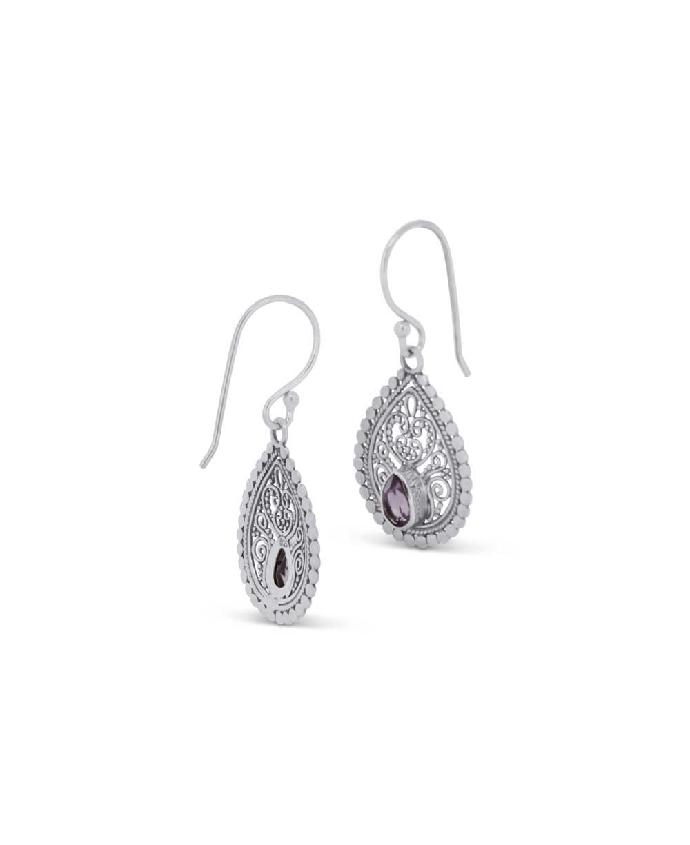 Discover the allure of the sterling silver filigree amethyst teardrop earrings. These stunning pieces beautifully merge elegance with vibrant colour, featuring a faceted amethyst stone nestled in intricate filigree. Handcrafted in Bali, they showcase exceptional artisan craftsmanship.